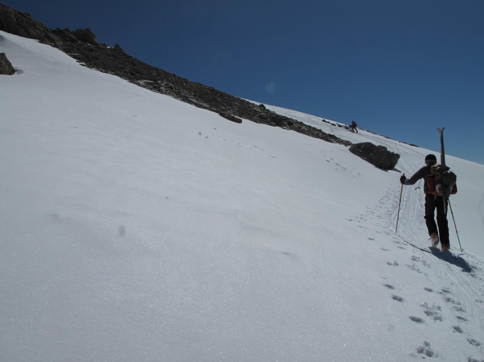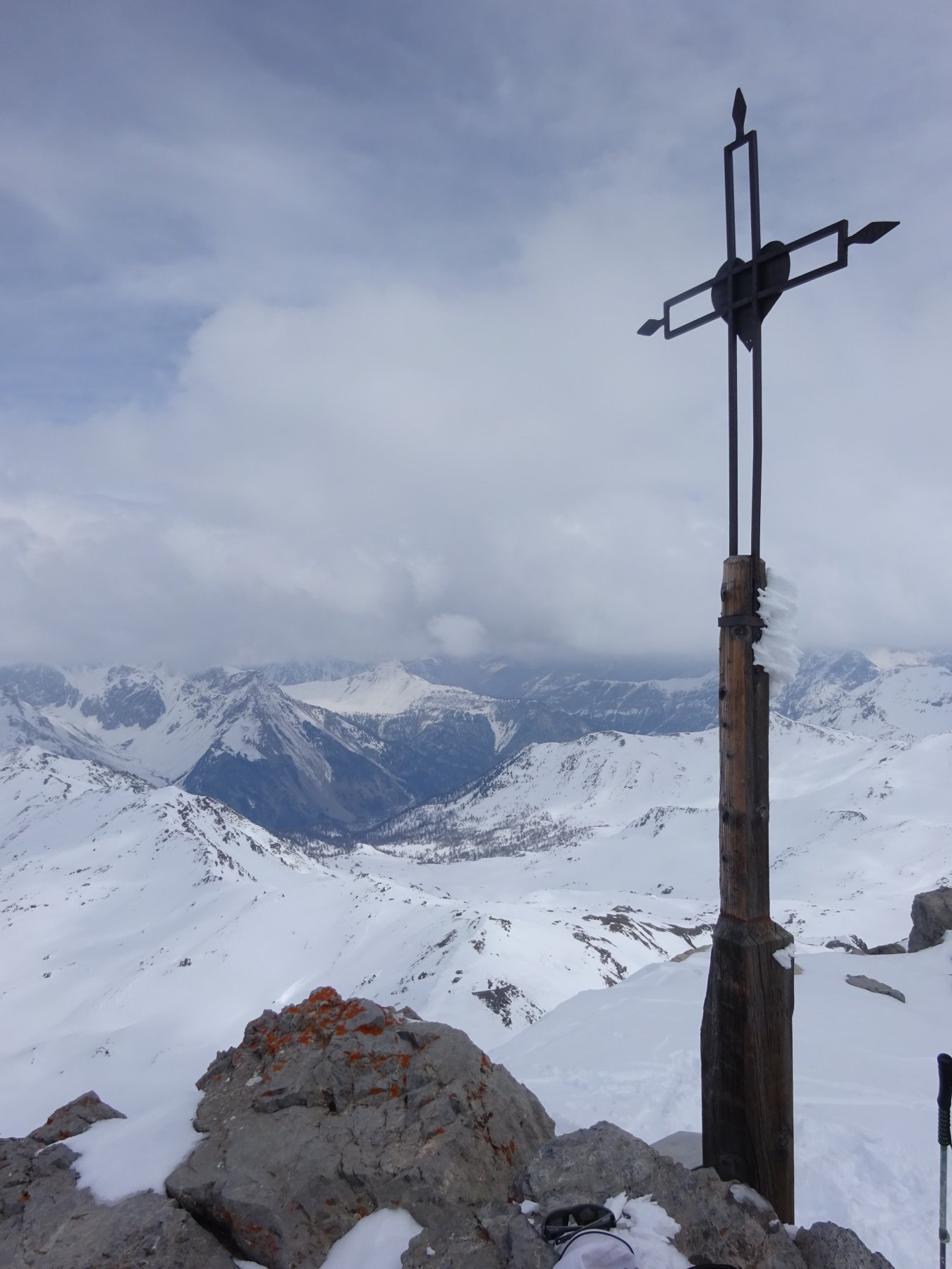 Risalire il canalone sino al termine e dal colletto sommitale pochi metri a sx conducono alla croce di vetta. Discesa sul percorso di salita sino al rifugio.