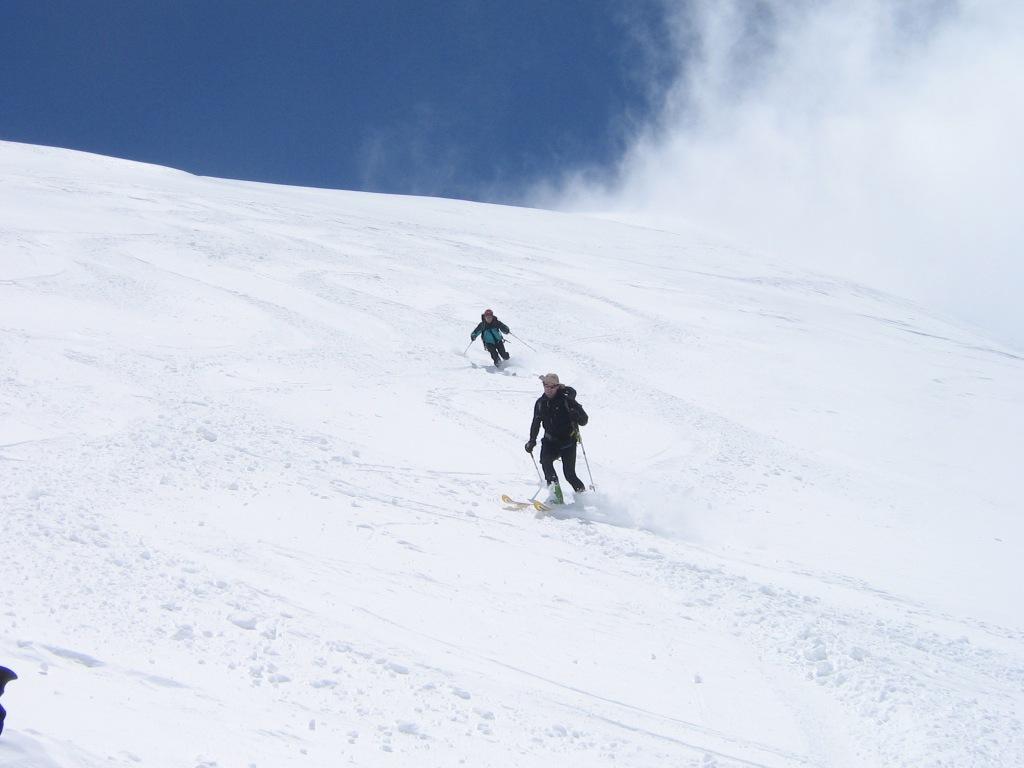 Degna conclusione della stagione scialpinitica, salita e discesa veramente superbe oltre che ambiente spettacolare. Incominciata domenica mattina col “pulmann” di Claudio che ha caricato 6 persone più tutto il materiale, mi è sembrato di ritornare ai tempi delle gite scolastiche; salita al passo del Gran S. Bernardo con visita guidata del monastero e poi albergo 2 stelle al rifugio FXB Panossiere… le 2 stelle sono per il rifugio ( bello) e per l’ottima ed abbondante cena. Le stelle che mancano sono per l’acqua: non esiste acqua in tutto il rifugio, anche non potabile. A cena l’acqua non è fornita e quindi la si deve acquistare a caro prezzo… Per fortuna alla sera e durante la notte ha nevicato e quindi ci siamo potuti lavare la faccia con la neve fresca… Nottata in bianco ( almeno per qualcuno) esattamente come le gite scolastiche anche se qui non c’erano le camere delle ragazze… Al mattino siamo partiti molto titubanti in quanto tempo instabile e lampi, spruzzate di neve “pallottolare” alternate a nebbia, ma poi quando ha incominciato a schiarire la nebbia si è dissolta temporaneamente e l’alba ci ha permesso di vedere la cima. In ogni caso è stato un continuo passaggio tra sereno e nebbia per tutta la gita, tranne la cima che invece è rimasta sempre sopra le nebbie anche se per pochissimi metri. Discesa impegnativa a tratti per le pendenze e a tratti per l’orientamento nella nebbia ( il Corridor lo abbiamo percorso completamente nella nebbia) fino al plateau de Dejeuner, dove la nebbia, svanita, ci ha permesso di fare una discesa spettacolare. Conclusione della gita a Fionnay con toilette nel ruscello per poi risalire sul pulmann per il lungo viaggio di ritorno. Un saluto a Mauro, Claudio, Gibi, Beppe e Luca ottimi compagni di avventure.