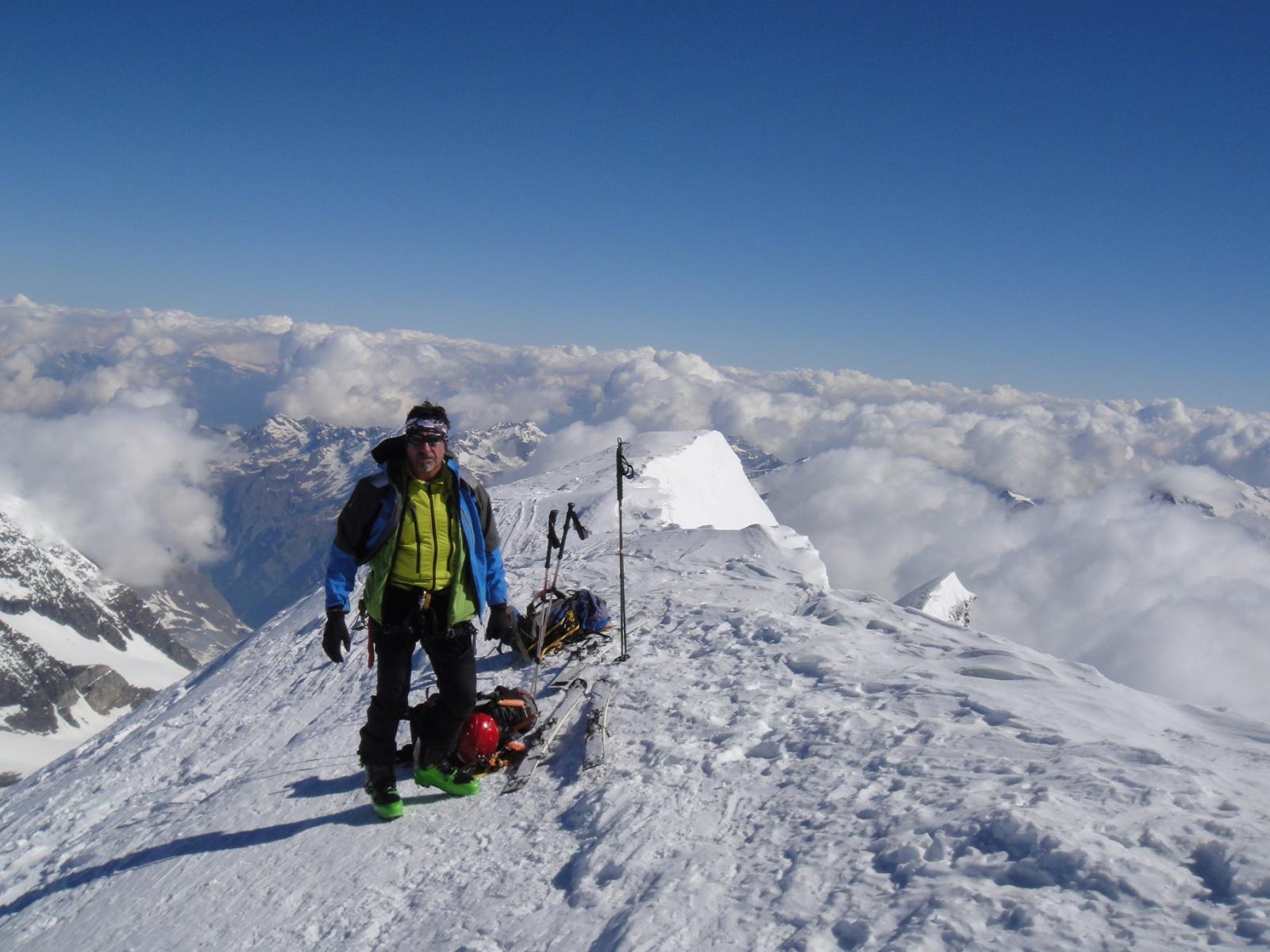 Ultimo giorno di apertura della cabane Panossière, portage fino a quota 2200, circa 2 ore dal parcheggio. Sveglia alle 2 e 45, colazione alle 3 e partenza sci ai piedi subito dopo. Scesi sul ghiacciaio e salita su buona traccia fino alla base del Couloir de Gardien, poi piccozze e ramponi fino all’uscita. Couloir in ottime condizioni con bella neve che tiene e uscita agevole, visto alcune cordate sulla vicina parete nord-ovest. Saliti prima sul Combin de Valsorey, discesa e si va sul Grafeneire. Da qui con un traverso un po’ delicato ci portiamo sopra il Mur de la Cote che scendiamo prudentemente a piccozze e ramponi, visti gli affioramenti di placche di ghiaccio. Alla base del Mur de la Cote si ripella e risaliamo al Combin de Tsessette dove le nuvole ci avvolgono. Discesa per il Corridor, non così male a parte i fastidiosi blocchi di ghiaccio su cui si scia in qualche tratto.. Certo che è meglio non guardare cosa c’è sopra e soprattutto togliersi da li molto in fretta, finchè non si è fuori ci si sente veramente come topi in trappola… Da qui bella, lunga e divertente sciata fino al rifugio, dapprima su crosta portante poi su bella neve trasformata che smolla solo in basso. Sosta al rifugio e rientro al parcheggio al termine di una bellissima, lunga e faticosa giornata.