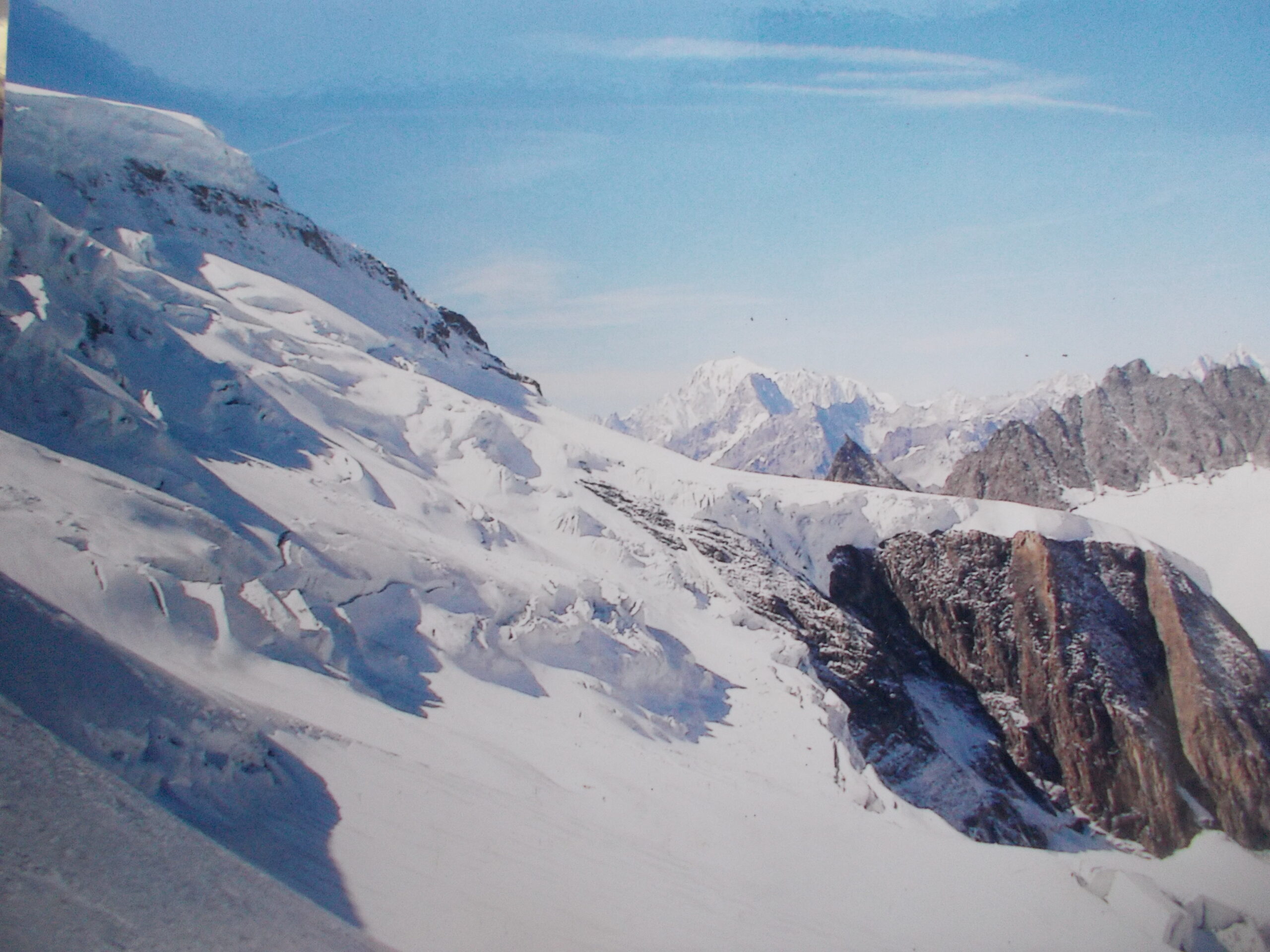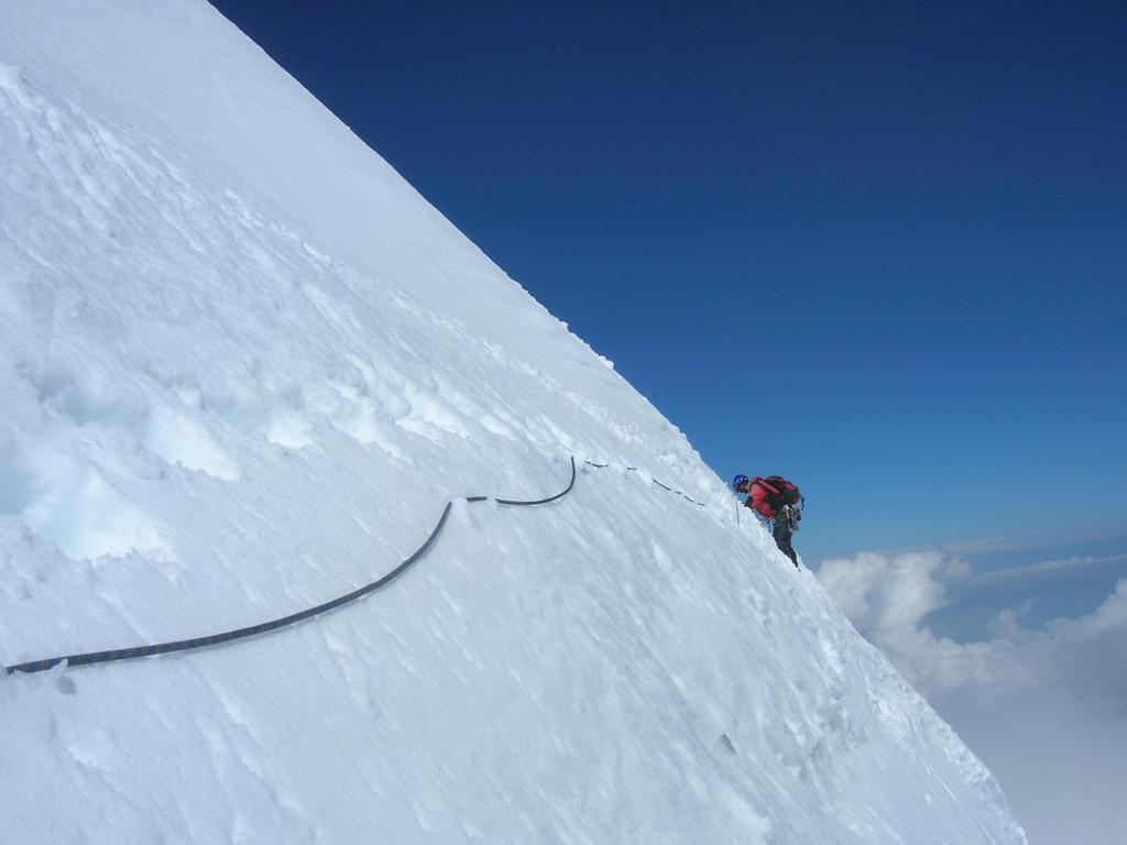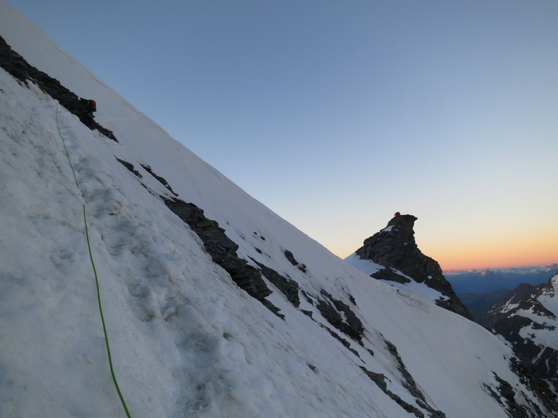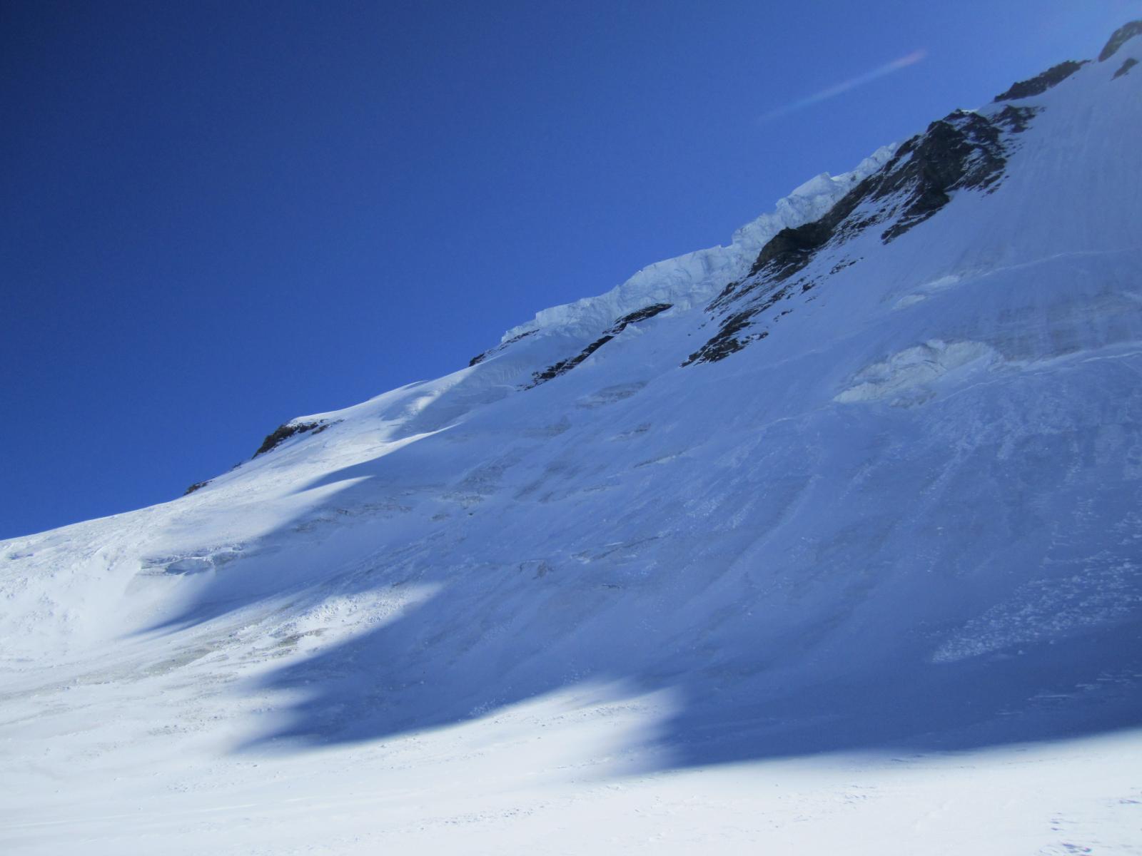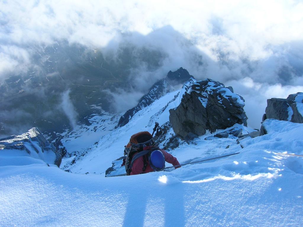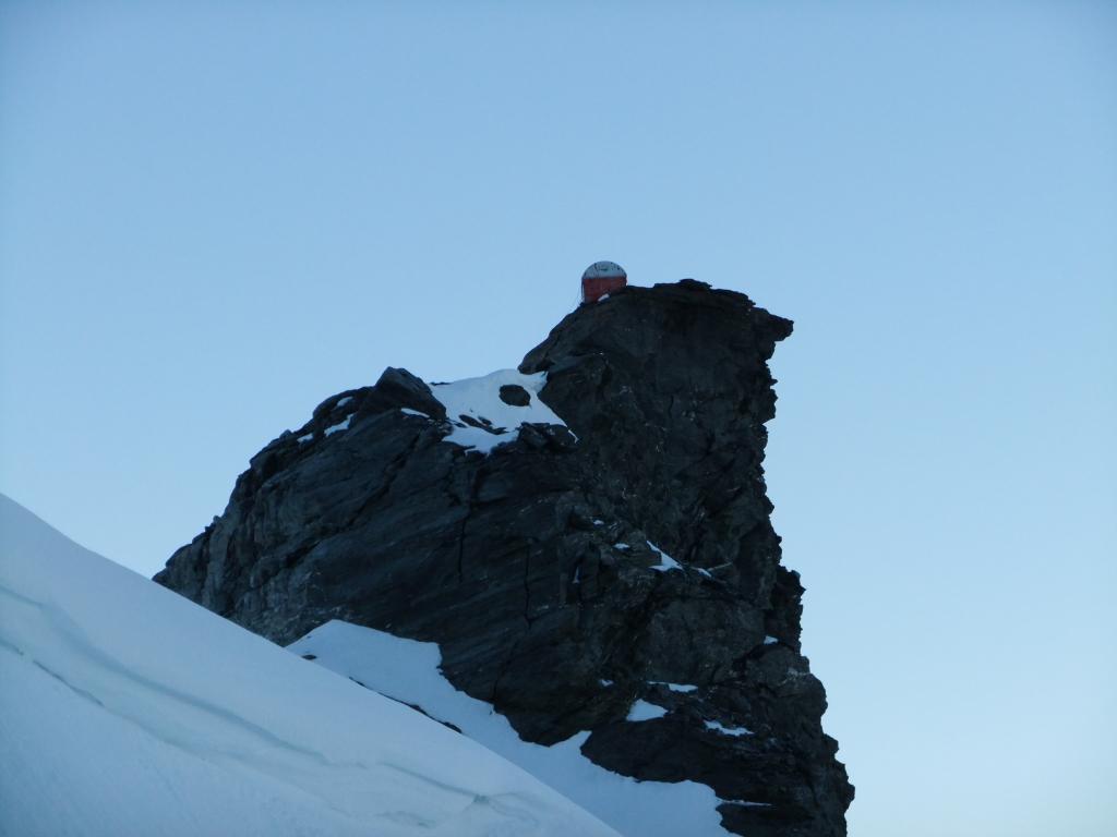 Così si raggiunge il Plateau du Couloir (3650 m. – 2/2.30 ore), punto di incontro della via normale proveniente dalla Valpelline (rif. Amianthe) e dal quale si può raggiungere il biv. Musso in circa 10 min. (vero nido d’aquila!).