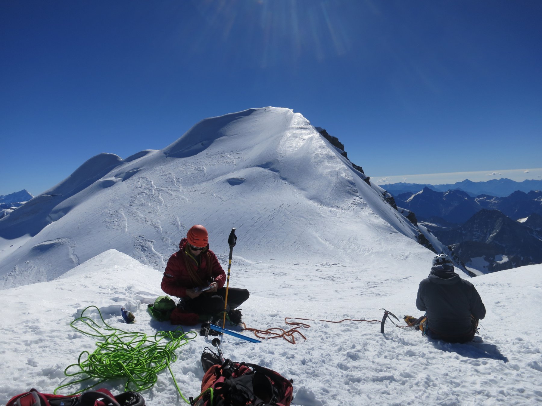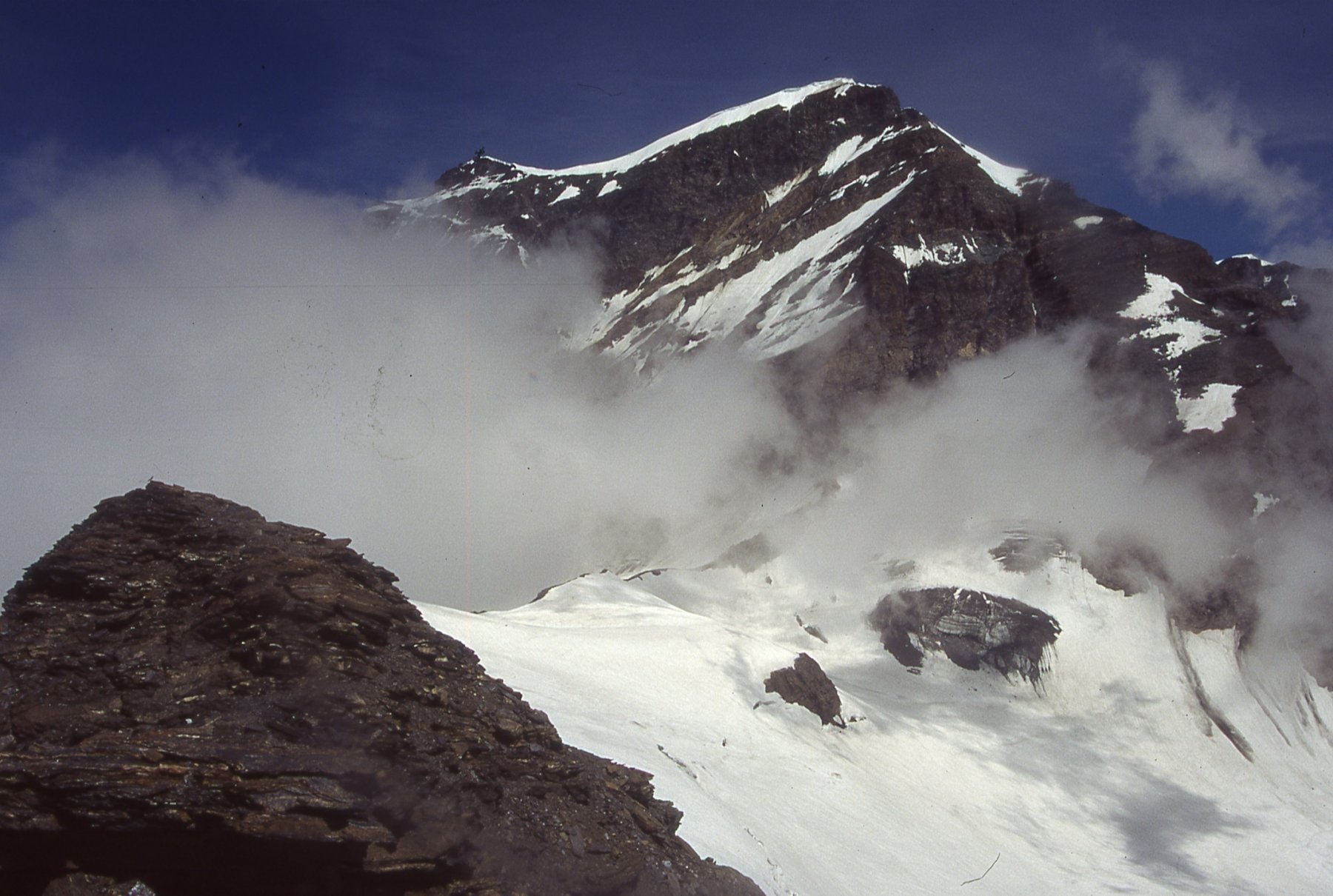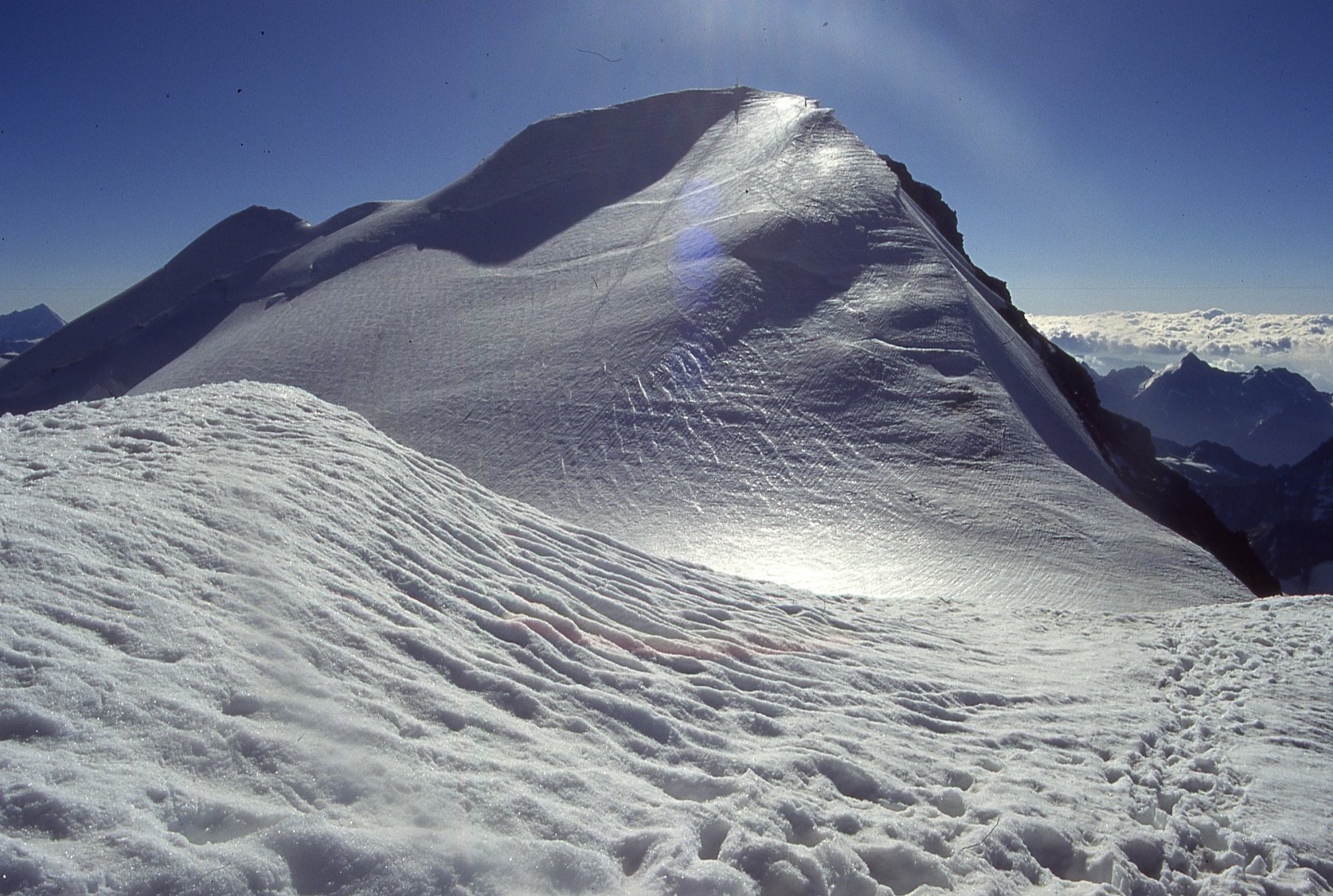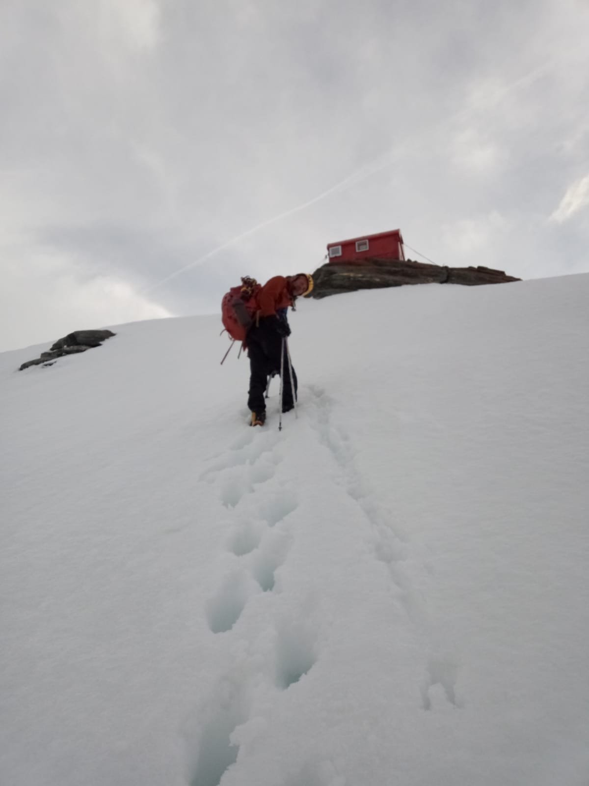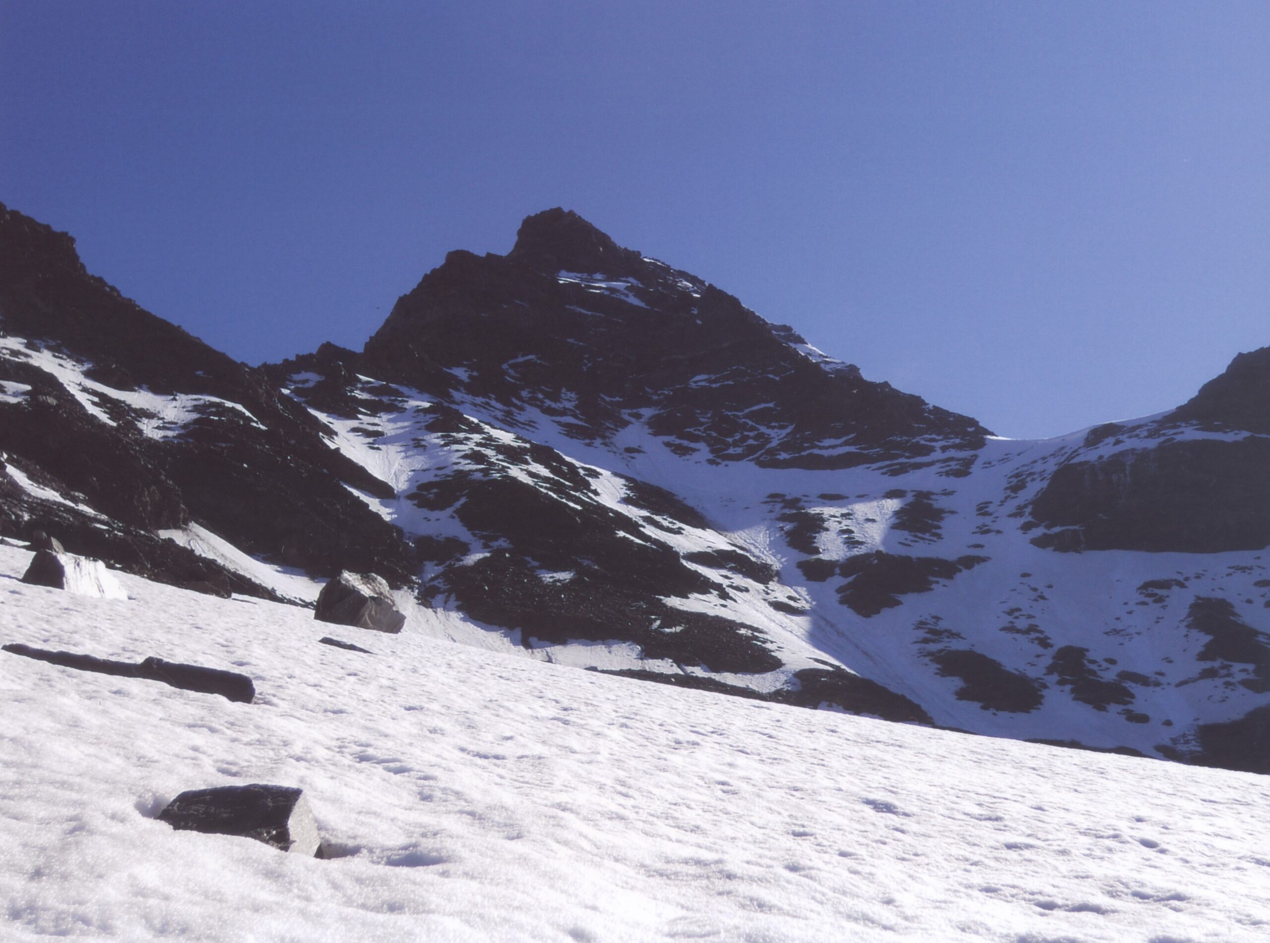 Così si raggiunge il Plateau du Couloir (3650 m. – 2/2.30 ore), punto di incontro della via normale proveniente dalla Valpelline (rif. Amianthe) e dal quale si può raggiungere il biv. Musso in circa 10 min. (vero nido d’aquila!).