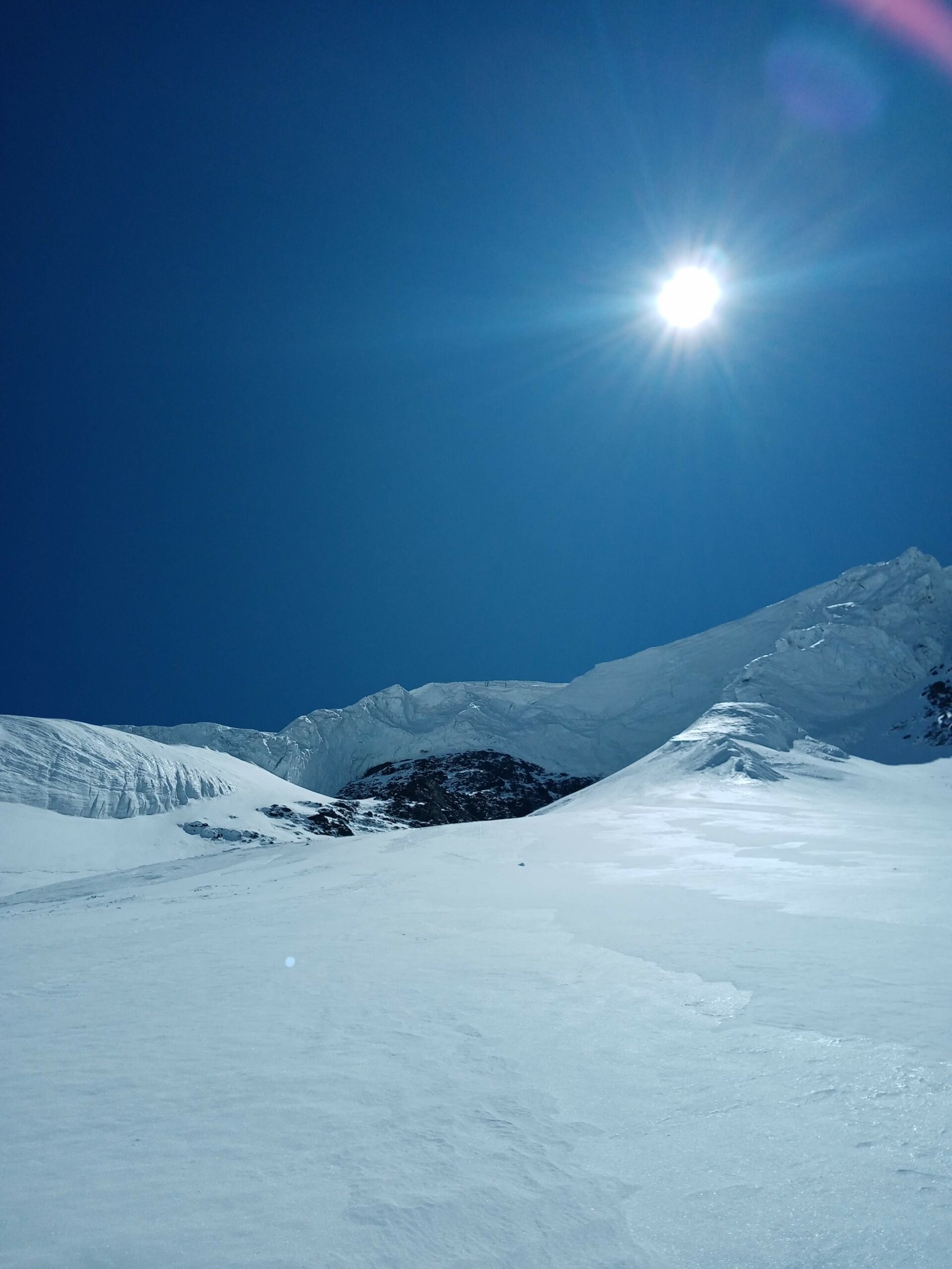 Raggiunto il Plateau du Couloir si ritorna attraverso il Col du Sonadon,traversando in alto al di sopra di una zona di seracchi.