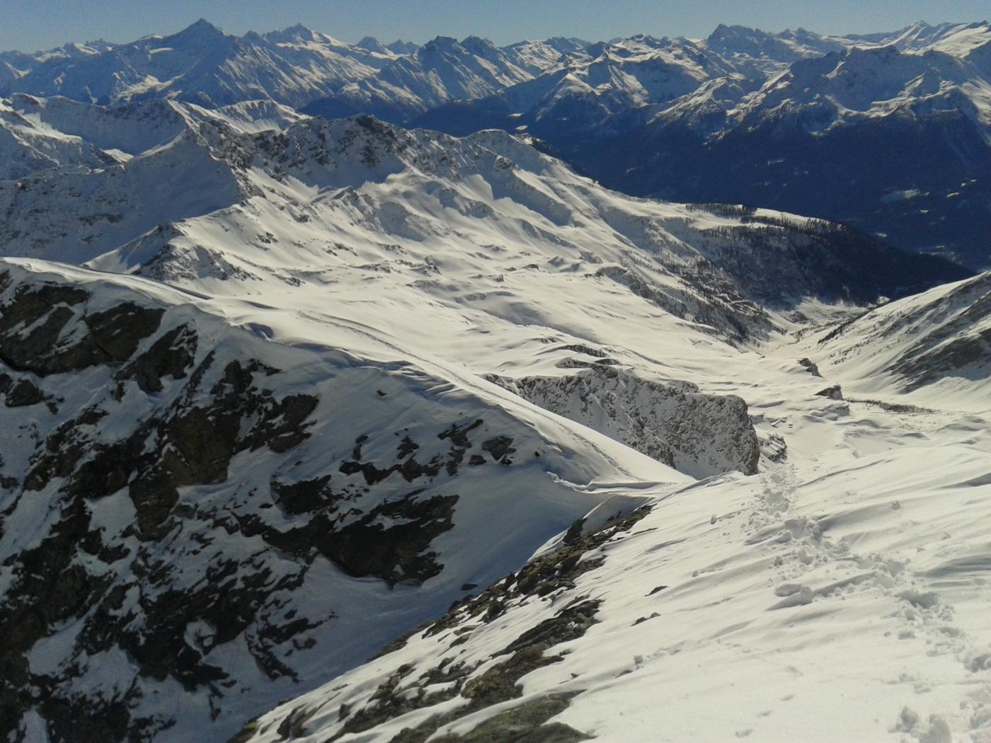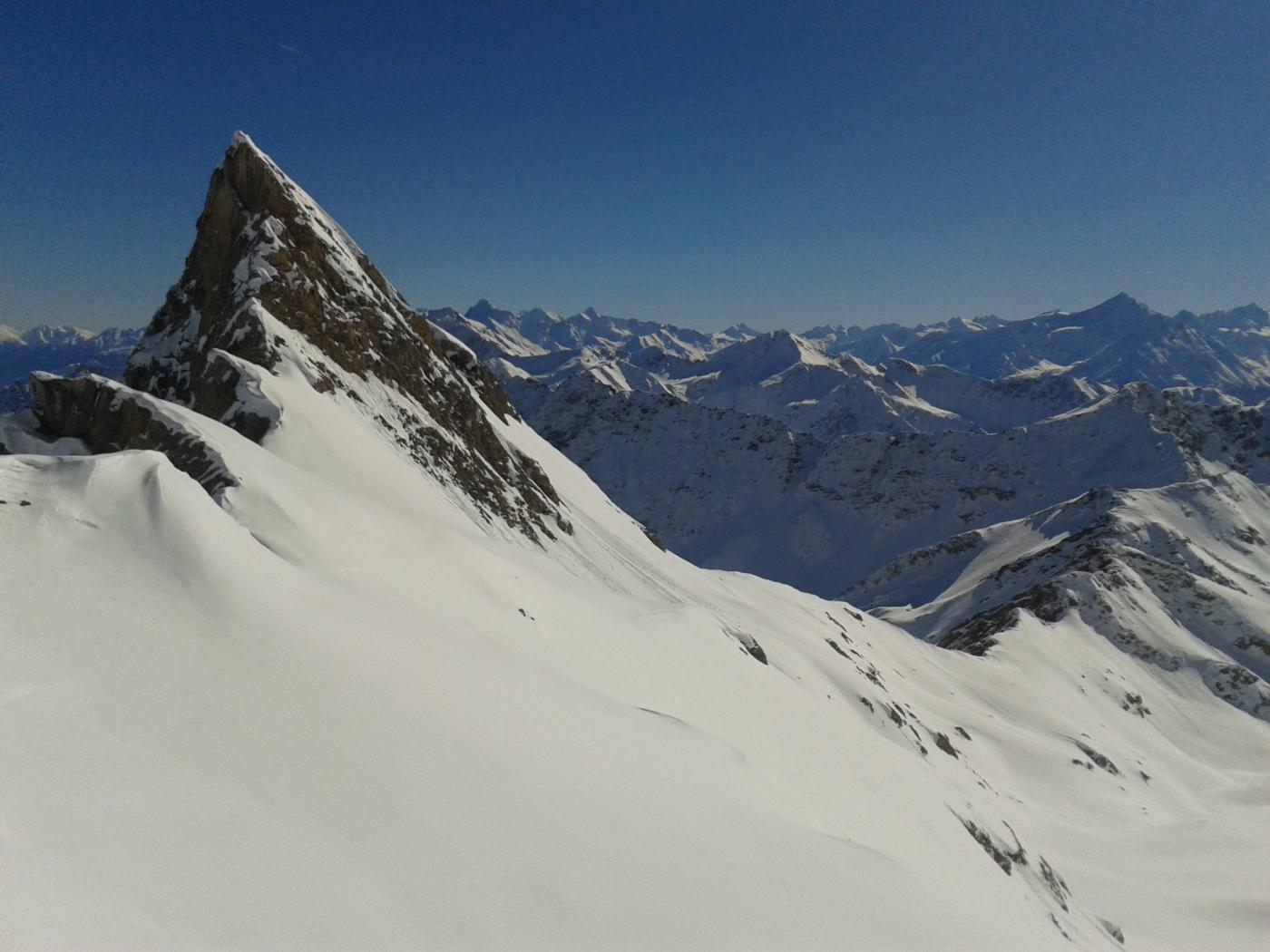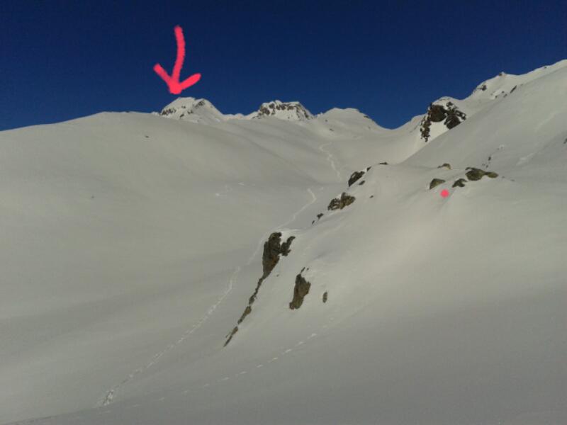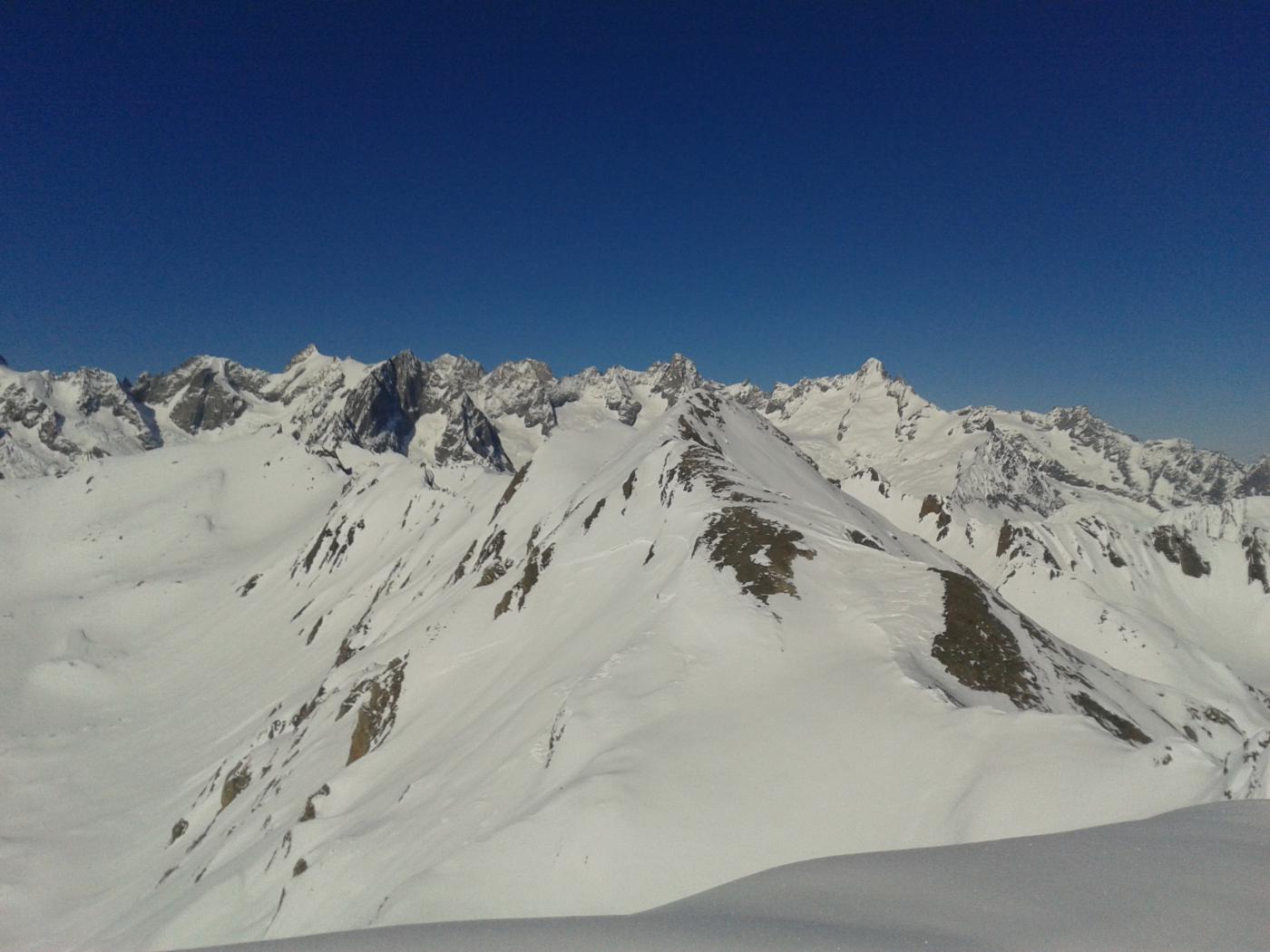 Lasciati gli sci al colletto, si percorrono a piedi gli ultimi metri della cresta. Questa punta è separata da un colletto dalla punta quotata e nominata sulle cartine con il nome: “Grand Creton”.