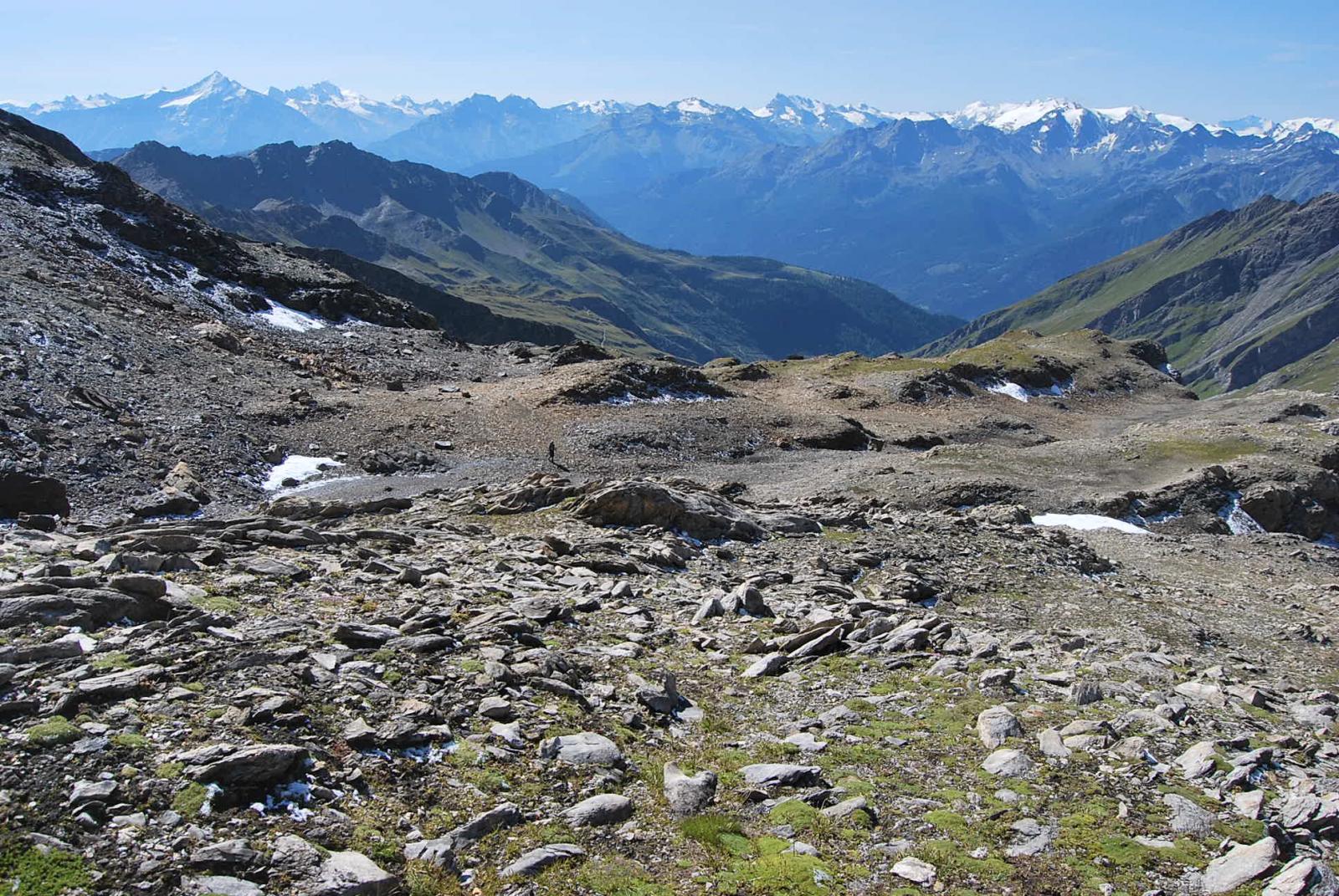 Per la discesa si puo’ scendere lungo il percorso dell’andata oppure scendere puntando verso Sud e seguendo la cresta per il primo tratto arivando poi direttamente all’alpeggio di Bonalex, da dove si torna a Planaval.