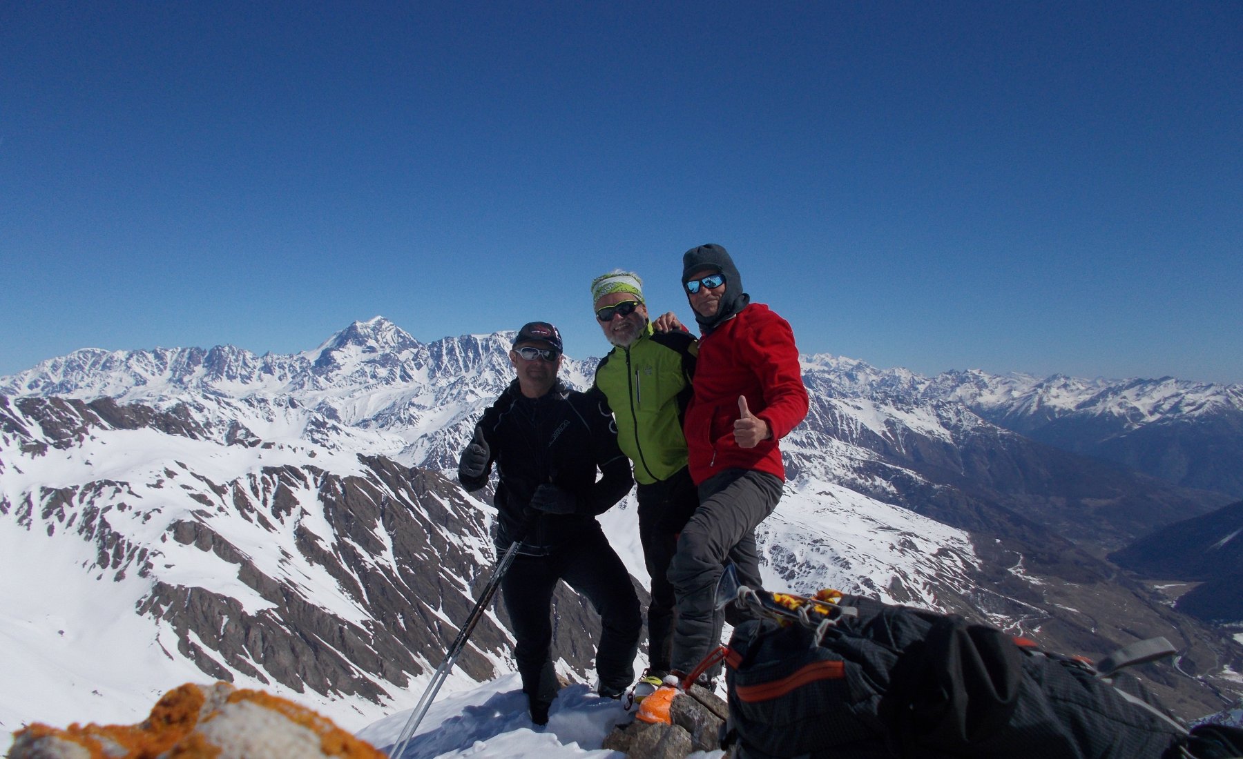 partiti da Mottes alle 7,30 meglio e si partiva anche prima giornata caldissima , con Enzo che ha voluto guadagnare la cima , io e Marco ci siamo fermati a quota neve, anche oggi gita azzeccatissima.