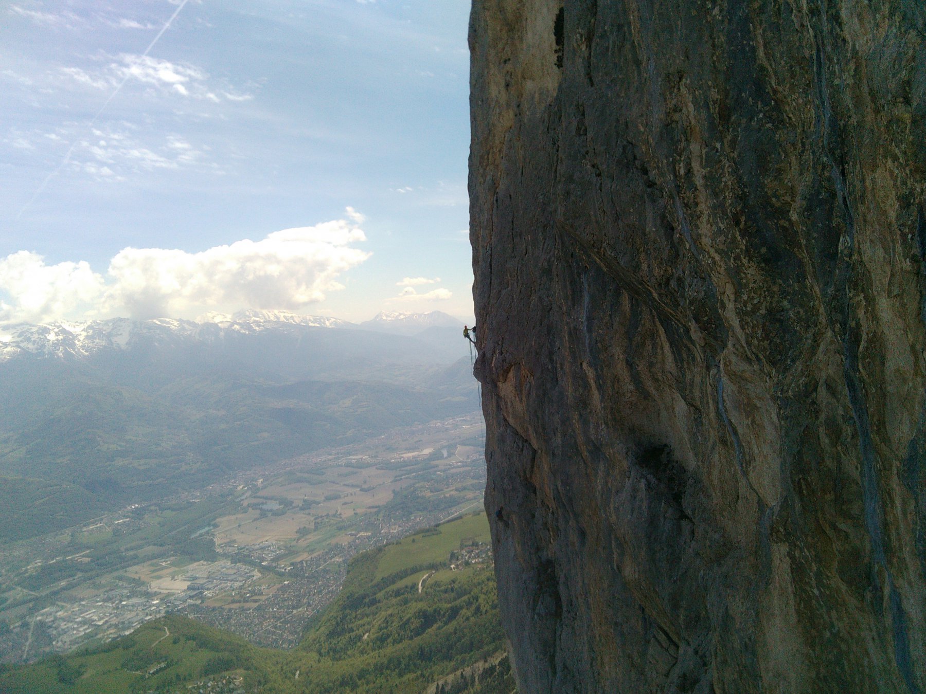 - L4: 5a, placca verticale, poi passaggio esposto verso sx a scavalcare lo spigolo, infine più facile, sosta su piattaforma a sx;