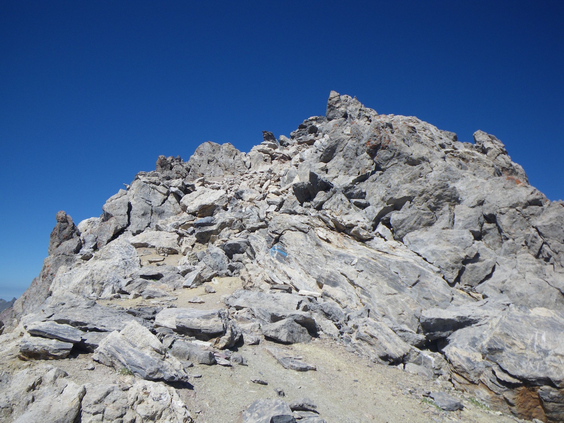 DISCESA: Dalla vetta su itinerario di salita, si prosegue fino al col Termier proseguendo per il sentiero evidente che attraversa la conca ex-glaciale (laghetto) e lascia sulla sua dx l’ometto e la discesa per il Colouir Termier, dal colle si prosegue con panoramicissima itinerario di dorsale fino al Col Ponsonniere (targa, cippo) e si scende sulla sx (scendendo) verso il Lago della Cerces che non si raggiunge e si piega a sx per altro sentiero (quello che scende) non quello che leggermente sale e rimane in quota (tutti questi sentieri sono evidenti, ma non hanno bolli e paline e numerazione), che porta alla Mottes raggiungendola prendendo una breve scorciatoia prima di incrociare la strada sterrata che scende da Camp de Rochilles. Raggiunta la strada si recupera l’auto precedentemente lasciata o si prosegue fino alla confluenza con la strada del Col du Galibier e si chiede un fortunoso passaggio (In alternativa sono 7 kim di infinta strada priva di sentiero…)