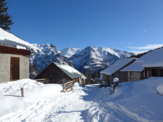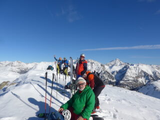 Neve dalla partenza, stradina perfettamente innevata tagli compresi. Dalle baite Granon seguito il percorso verso col Granon, poi risalito il bois de Granon quindi piegato verso il Ravin de Gravieres e raggiunto il colle tra il Pte. e il Gr. Meyret e dal colle in breve in cima. Splendido panorama.