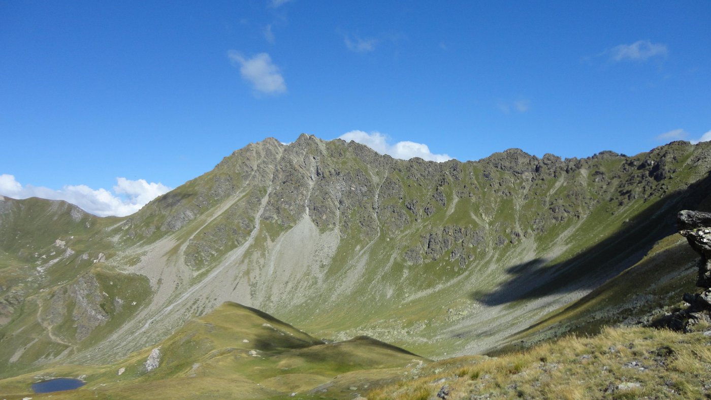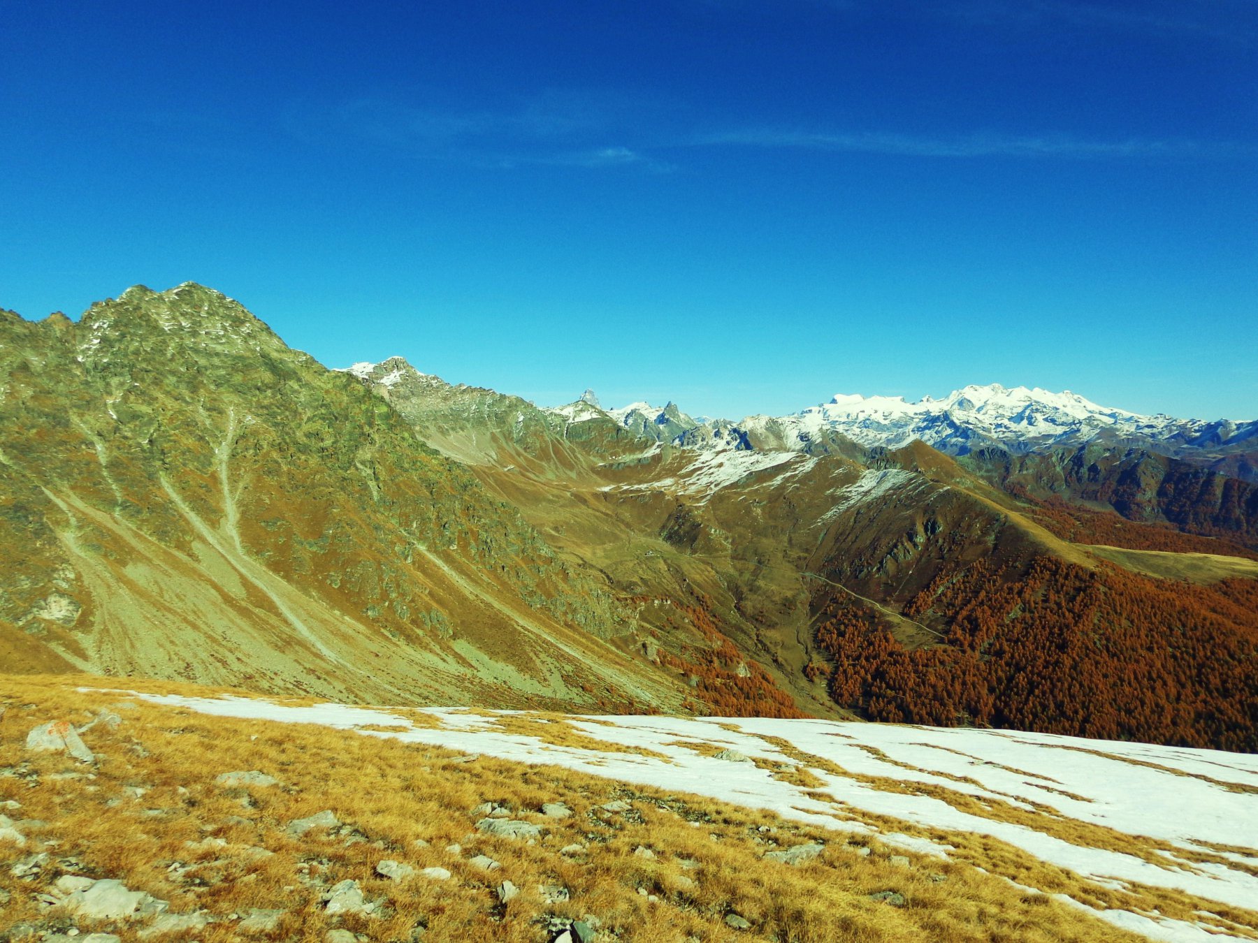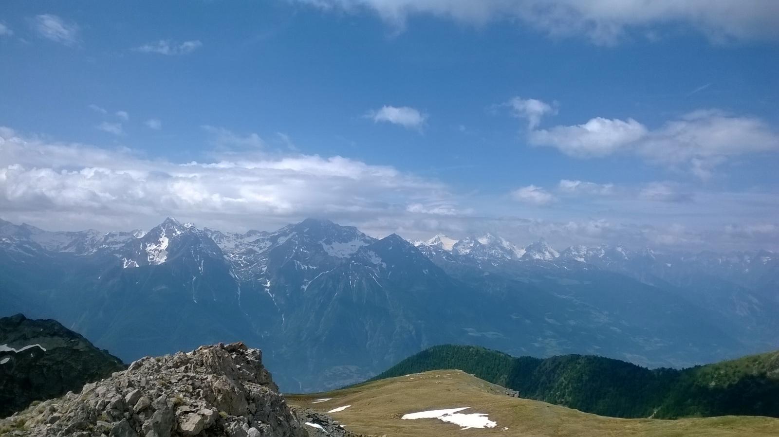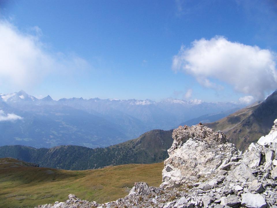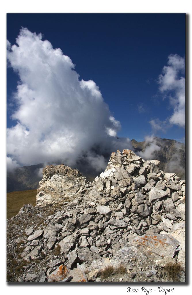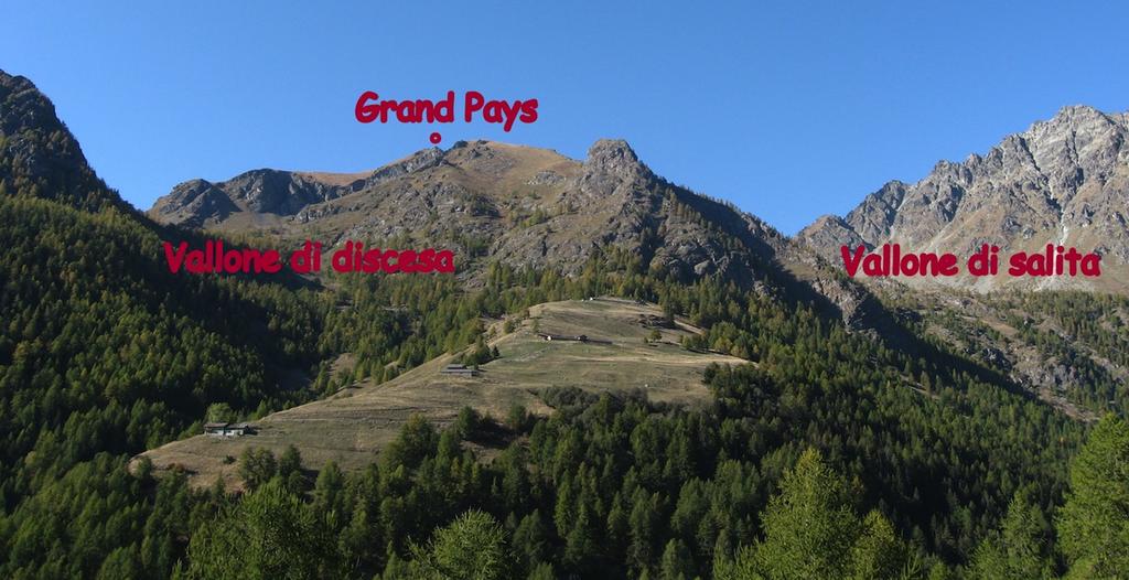Superata l’Alpe Leché (2H da Lignan) il Col Leché risulterà chiaramente visibile in testa al vallone, leggermente a sinistra (S). Lo si raggiunge (40′ dall’Alpe) per tracce di sentiero su pianori erbosi a SO, oppure percorrendo i sentieri di fondovalle in gran parte fangosi e degradati dal passaggio del bestiame. Dal colle si percorre per lungo tratto la cresta a sx (S), che non presenta particolari difficoltà alpinistiche, superando o aggirando alcune modeste antecime. Si giunge infine sulla vetta del Gran Pays (2724 mt circa, ometto in pietra, 3H 15′ da Lignan) caratterizzata da due profonde fenditure instabili per via delle quali si raccomanda massima prudenza in caso di nebbia fitta o neve che ricopre il terreno.