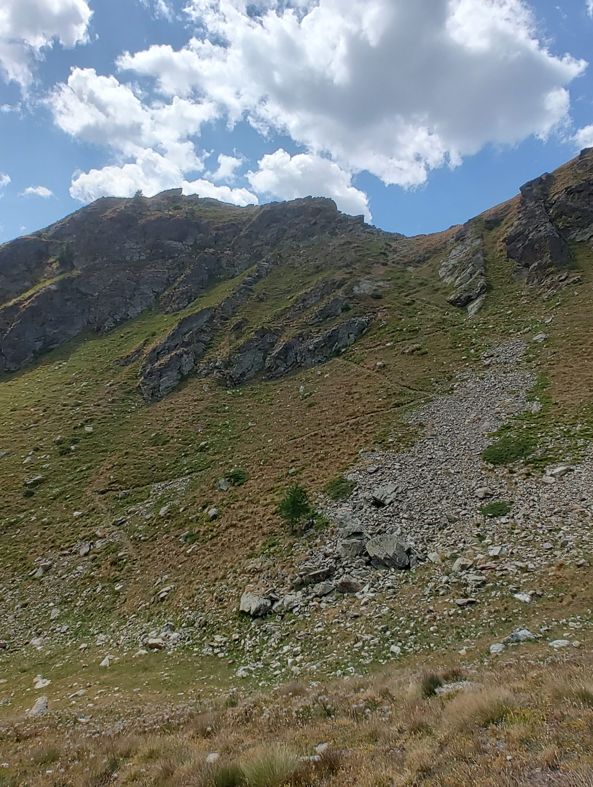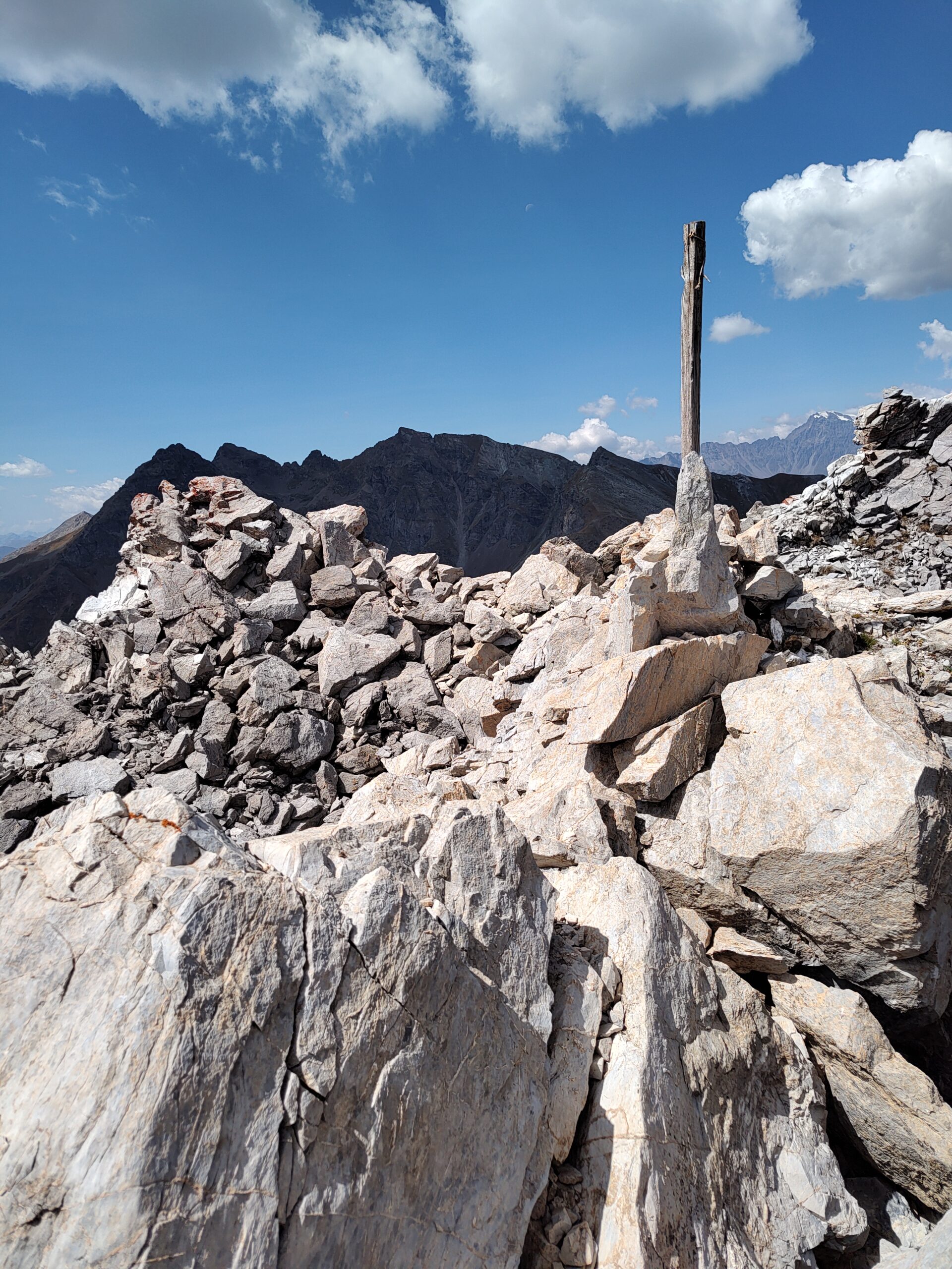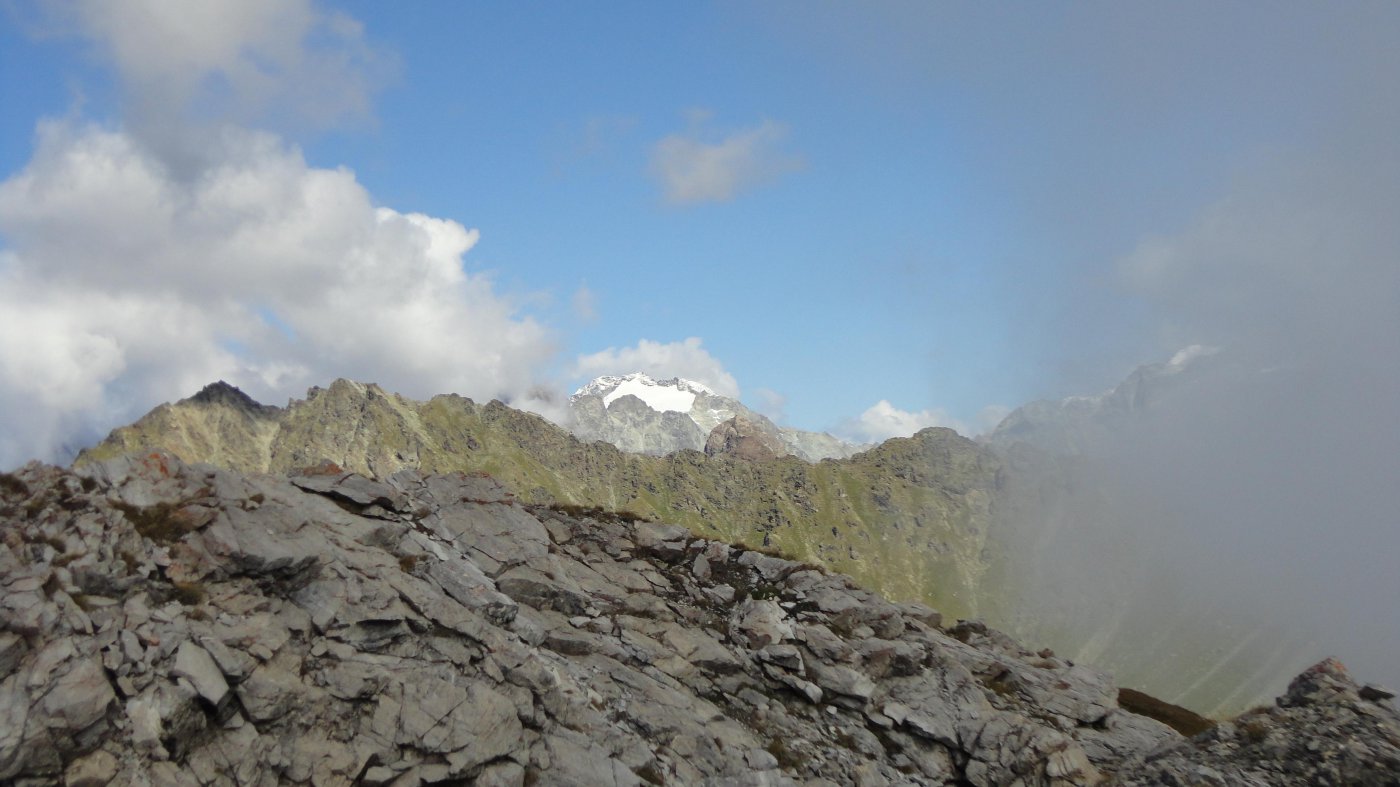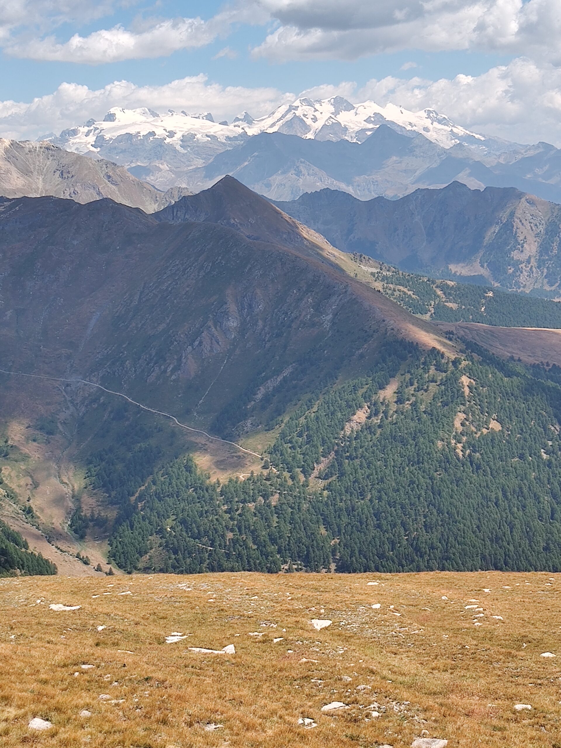 Superata l’Alpe Leché (2H da Lignan) il Col Leché risulterà chiaramente visibile in testa al vallone, leggermente a sinistra (S). Lo si raggiunge (40′ dall’Alpe) per tracce di sentiero su pianori erbosi a SO, oppure percorrendo i sentieri di fondovalle in gran parte fangosi e degradati dal passaggio del bestiame. Dal colle si percorre per lungo tratto la cresta a sx (S), che non presenta particolari difficoltà alpinistiche, superando o aggirando alcune modeste antecime. Si giunge infine sulla vetta del Gran Pays (2724 mt circa, ometto in pietra, 3H 15′ da Lignan) caratterizzata da due profonde fenditure instabili per via delle quali si raccomanda massima prudenza in caso di nebbia fitta o neve che ricopre il terreno.