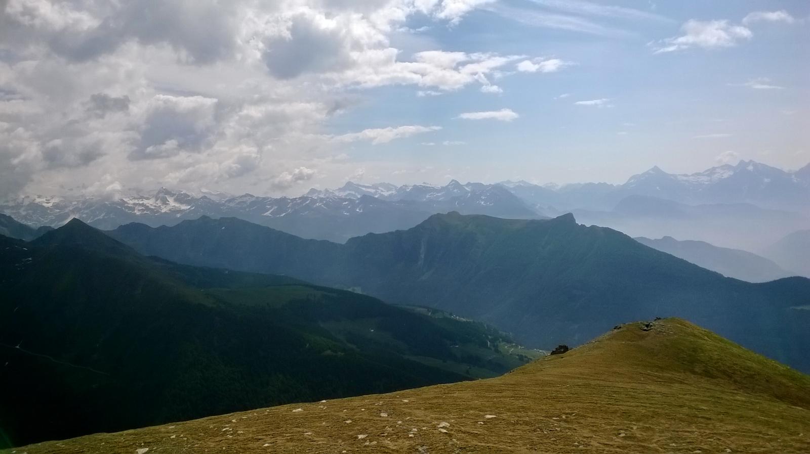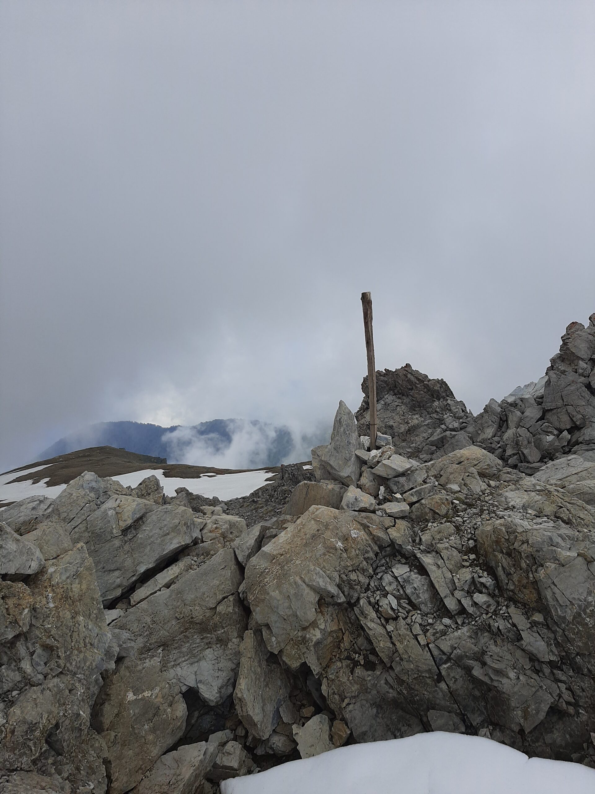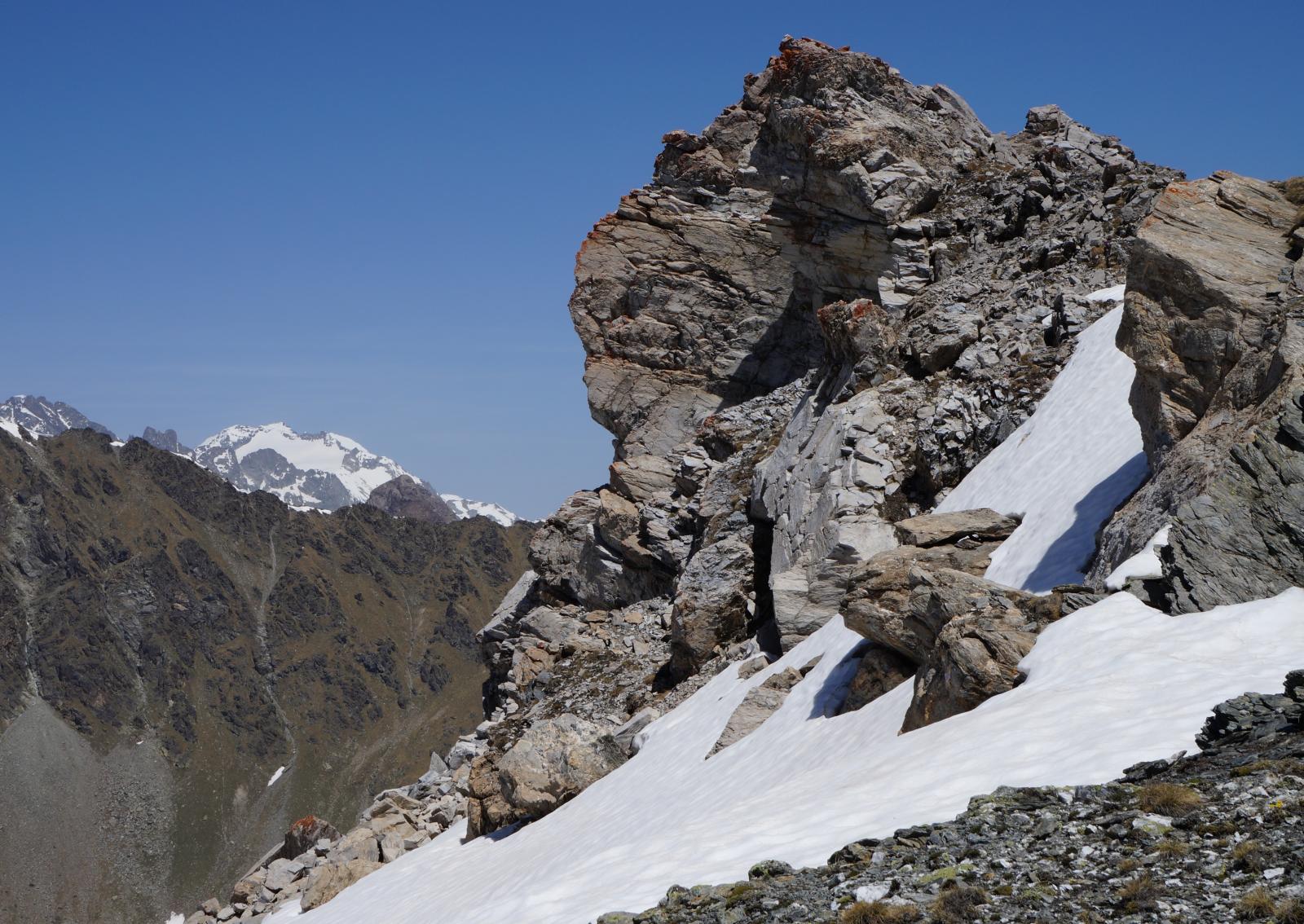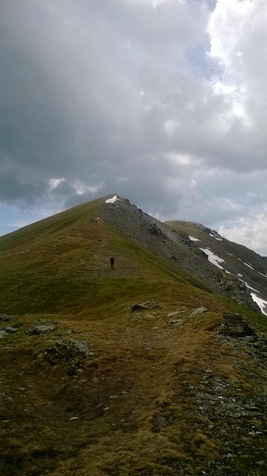 Superata l’Alpe Leché (2H da Lignan) il Col Leché risulterà chiaramente visibile in testa al vallone, leggermente a sinistra (S). Lo si raggiunge (40′ dall’Alpe) per tracce di sentiero su pianori erbosi a SO, oppure percorrendo i sentieri di fondovalle in gran parte fangosi e degradati dal passaggio del bestiame. Dal colle si percorre per lungo tratto la cresta a sx (S), che non presenta particolari difficoltà alpinistiche, superando o aggirando alcune modeste antecime. Si giunge infine sulla vetta del Gran Pays (2724 mt circa, ometto in pietra, 3H 15′ da Lignan) caratterizzata da due profonde fenditure instabili per via delle quali si raccomanda massima prudenza in caso di nebbia fitta o neve che ricopre il terreno.