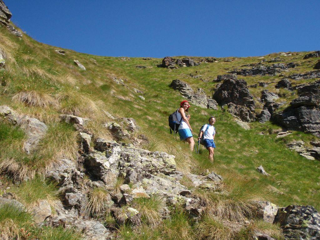 Possibilità di giro ad anello, ma sul versante NE il primo tratto dalla vetta non è segnato da sentiero: bisogna puntare alla discesa nel vallone per poi congiungersi con il sentiero N. 9.
