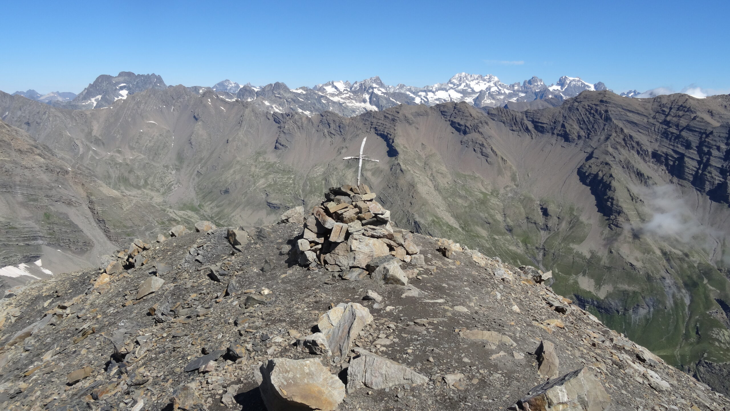 Ad oggi la gita e prettamente escursionistica, il sentiero ben disegnato nella parte alta, evita i nevai (ne ho attraversato solo un in piano per 10 metri, altrimenti si poteva passare per i blocchi) e seguendo gli ometti anche la parte nei blocchi è molto breve. Il sentiero è ripido ma abbastanza compatto, in tutto il persorso non c’è rischio di caduta massi. Ero preoccupato di trovare dei nevai, nello zaino avevo i ramponcini escursionistici, invece anche la cornice di neve sulla cima che si vedeva da lontano era assente proprio dove passa il sentiero.