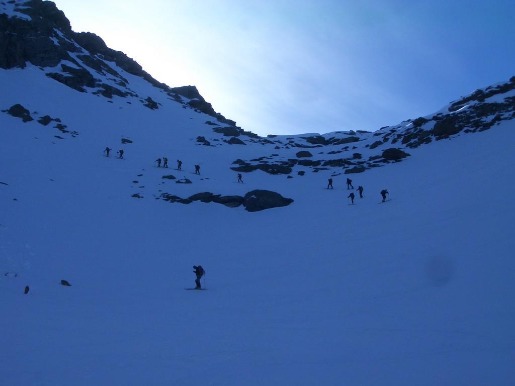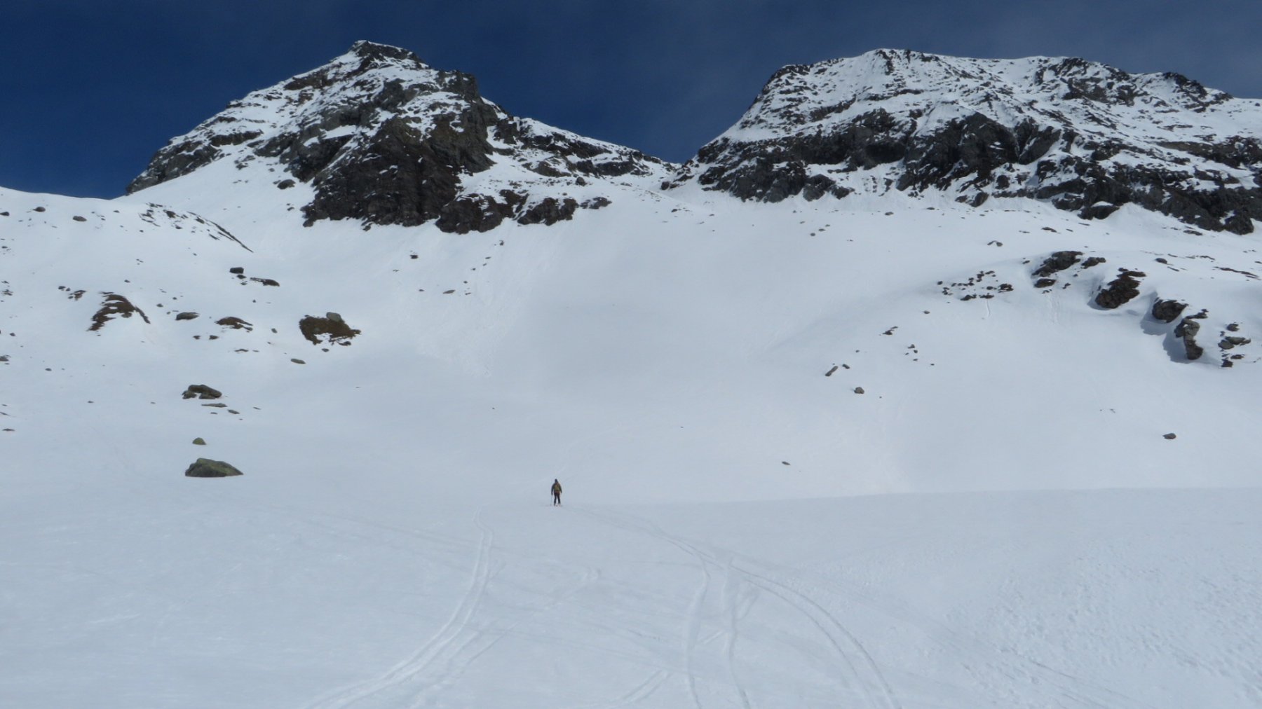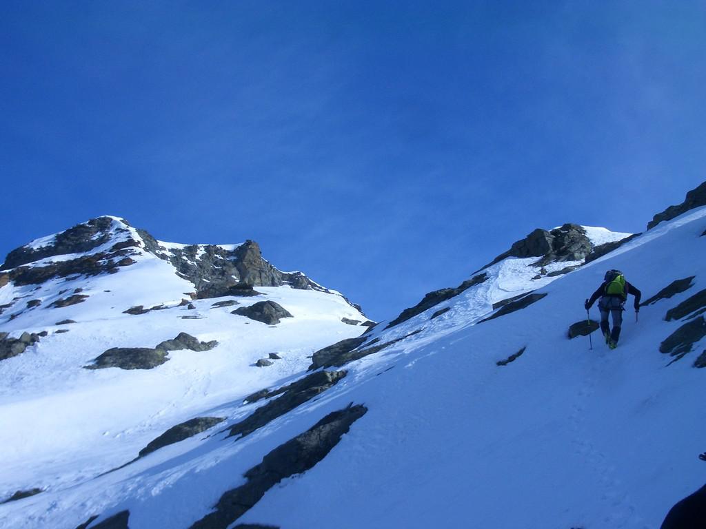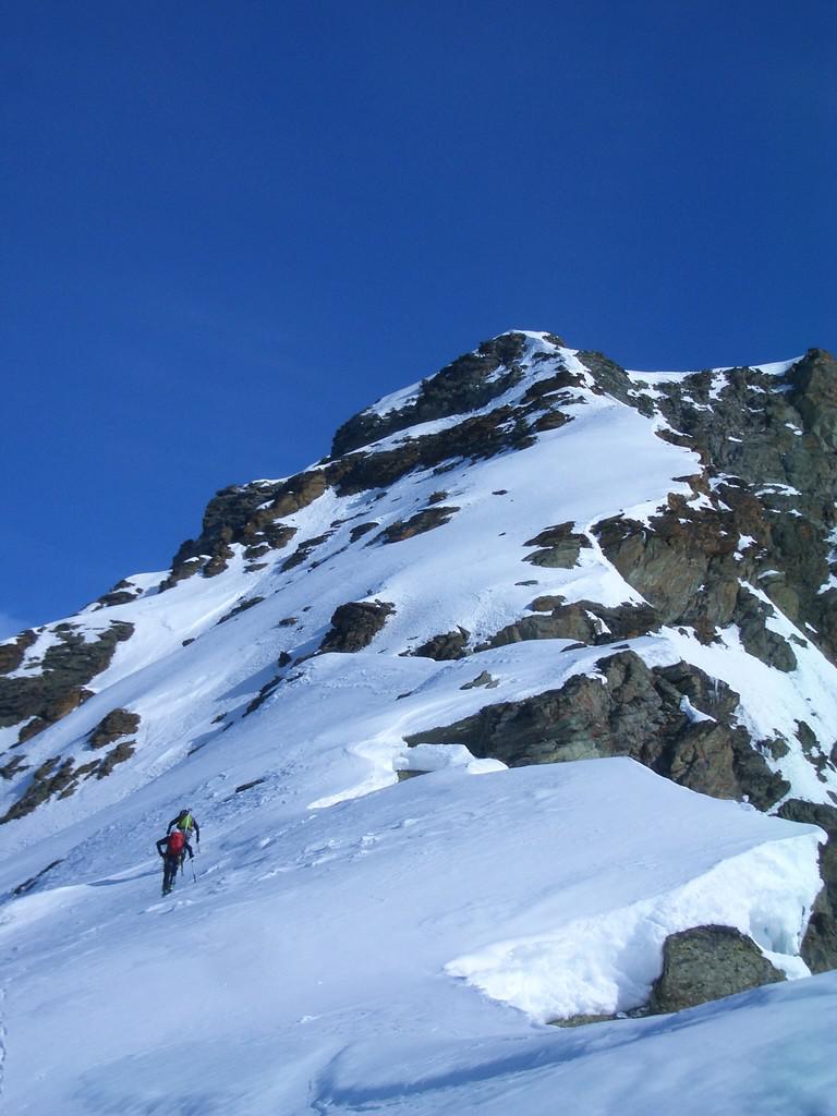 L’itinerario è in comune con quello del piccolo Tournalin fino sotto al colletto che separa le due cime. Di qui si può salire verso sinistra e guadagnare la cresta sud. Gli sci, se le condizioni neve sono buone, si possono portare fino a 3200 metri circa sul filo di cresta (pendio ripido).