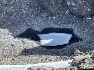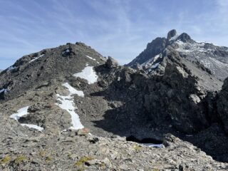 Sono salito e sceso dal Pointe du Grand Vallon senza fare l’anello, il ripido pendio detritico era in parte innevato e c’era una grossa cornice di neve al colletto, anche se c’era qualche segno di passaggio in fondo alla discesa; ciò mi ha però permesso di ammirare il bellissimo panorama durante il ritorno e di ridurre il tempo della gita a 3 ore e mezza (il sentiero di cresta mi ha permesso di tenere un buon passo).