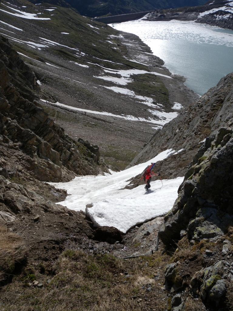 Saliti per la N, molto sfondosa già alle 10:30, quindi scesi poi per la normale … scesi anche un po di più perché il velluto con panna e cannella impediva ai miei sci di fermarsi … arrivati quindi ad un pianello q.2600 alla fine del ghiacciaio, poi risalita al colle d’Oin sotto un sole cocente … dal colle neve ovviamente marcia ma comunque divertente, fino al lago.