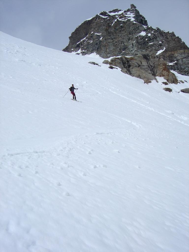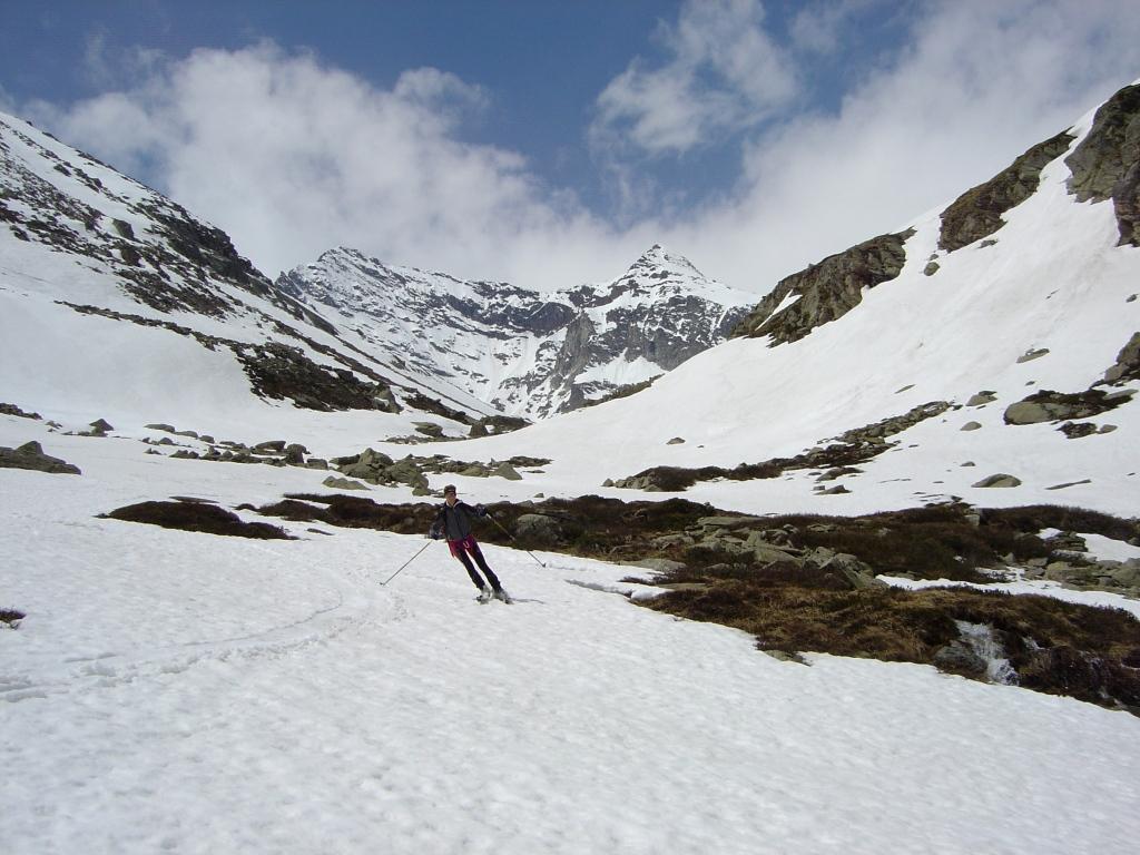 Stamattina trovato chiusa la strada quota 2050 mt.circa.quindi iniziata la gita con sci in spalla lungo un sentiero che ci portato sul lato sx del lago. A quota 2200 abbiamo calzato gli sci. Scarso rigelo notturno però sufficiente per salire senza problemi i ripidi pendii. Dal col d’Oin breve discesa su splendido firn sul ghiacciaio del versante francese ( Sources de l’Isère). Quindi risalita verso la cima su neve ottima ( crepacci tutti chiusi). Unica nota negativa : appena arrivati in vetta il sole è sparito tra le nuvole e la prima parte della discesa è avvenuta sotto una leggera nevicata ma con visibilità discreta. Fortunatamente la seconda parte della discesa sul versante italiano è stata migliore xchè è riapparso il sole. In alto bella neve trasformata mentre più in basso a seconda dell’esposizione neve un pò più marcia ma mai sfondosa e quindi sciabilissima. Sotto il lago Serrù seguito un valloncello innevato vicino al fiume che ci ha permesso di scendere con sci ai piedi fino a quota 2150 mt.a fianco della strada. Gita di gran soddisfazione che si snoda in un’ambiente veramente grandioso.