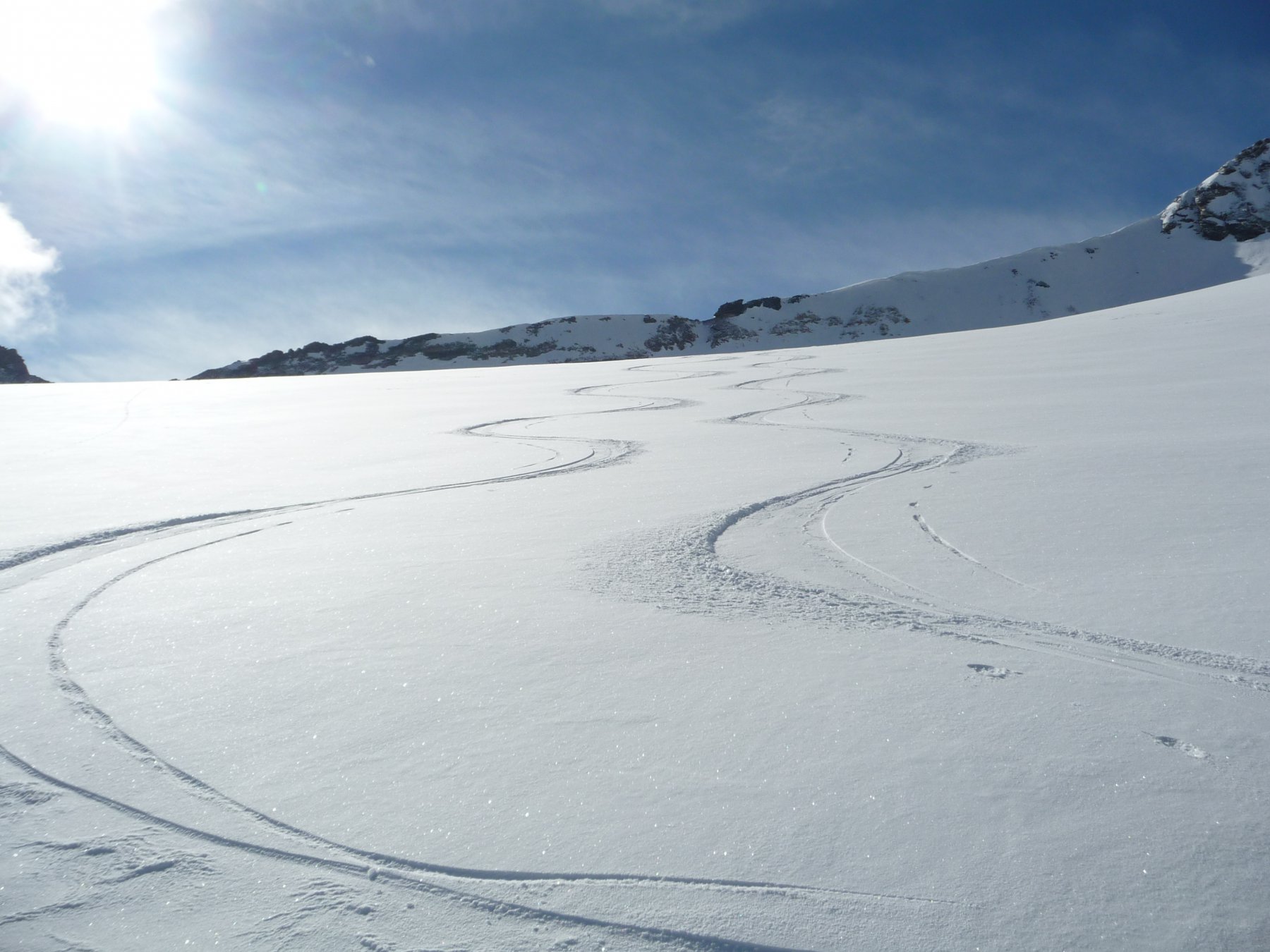 Gli sci si calzano sopra il lago e visto l’ottimo rigelo salita fino al colle delle Rocce con i ramponi. Da li sc ai piedi fino al col d’Oin (ad eccezione della divagazione al Carro). Tolte le pelli discesa da sballo sul ghiacciaio fino a raggiungere l’itinerario di salita qui descritto. Salita in vetta sci ai piedi e poi discesa lato Francia fino alla fine del ghiacciaio e anche oltre su neve magnifica. Ripello fino al col d’Oin per il rientro su neve cotta dal sole ma sempre ben sciabile.