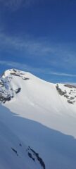 Salendo lato colle Coin il portage é breve, neve trasformata su tutto il percorso con rigelo superiore alle aspettative anche in basso. Siamo passati dallo stesso lato anche al rientro perché la discesa dal passo della vacca é molto secca e quasi non più percorribile. La parte di salita in comune con la cima del Carro é iper tracciata ma nonappena si abbandona questa traccia la neve é liscia e piacevole. La nord est appare in condizioni molto buone, poco svalangata e con poche tracce leggere, noi abbiamo fatto la normale, in realtà sbagliando e salendo alla Piccola Aguille Rousse ma abbiamo deciso di accontentarci così.