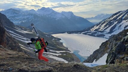 Dal parcheggio 20 minuti di portage e poi si sale il canale della ballotta agevolmente , poi sci fino a inizio parete, quindi noi per sicurezza abbiamo fatto un altra traccia al centro parete perché quella che c’è a destra passa proprio sotto una cornice grossa e non è bello. La discesa tranne la parete era tutta marcia.. Bella li.!!