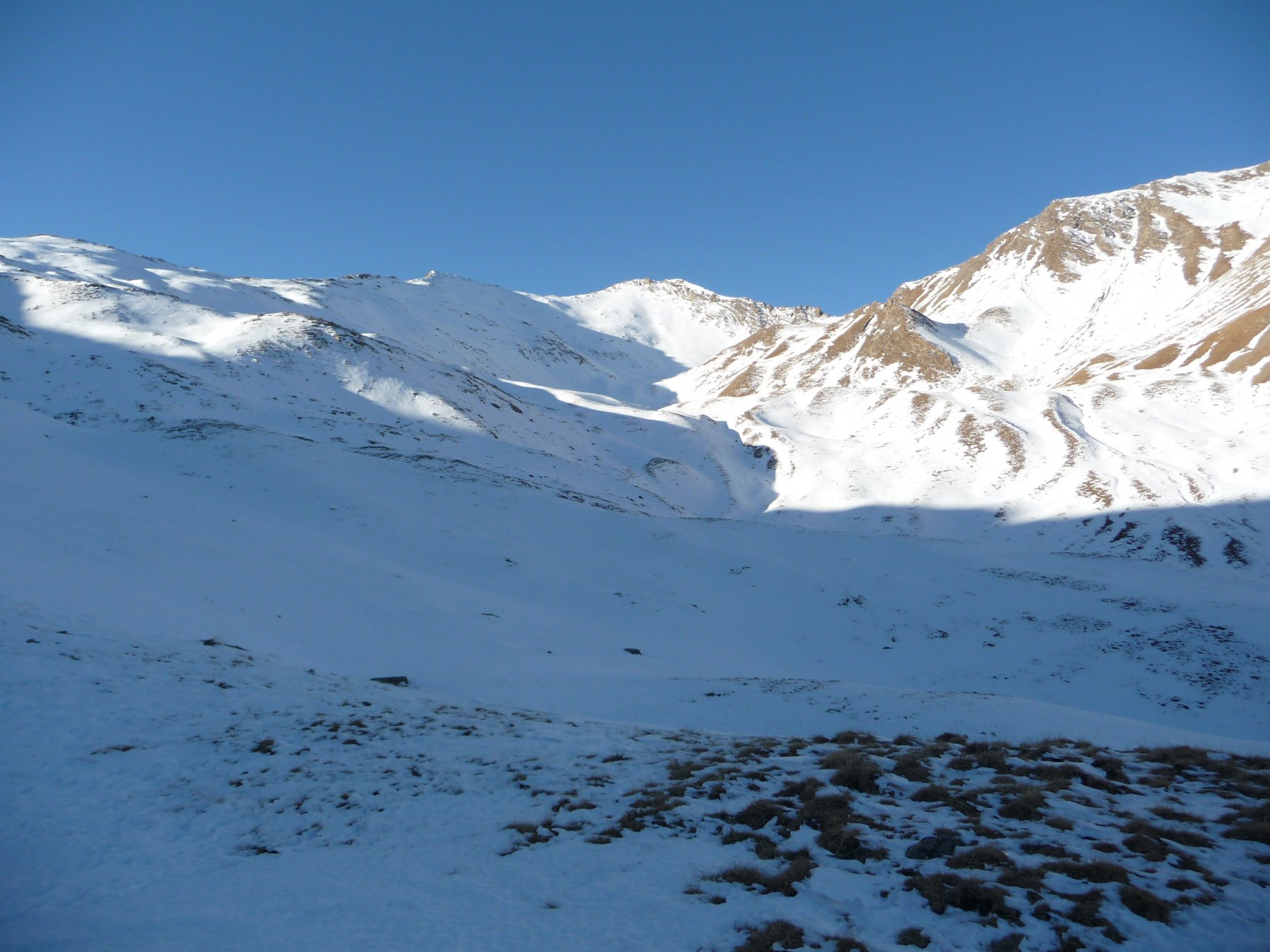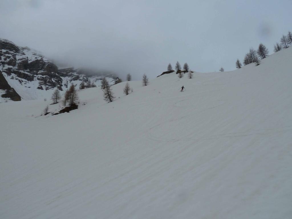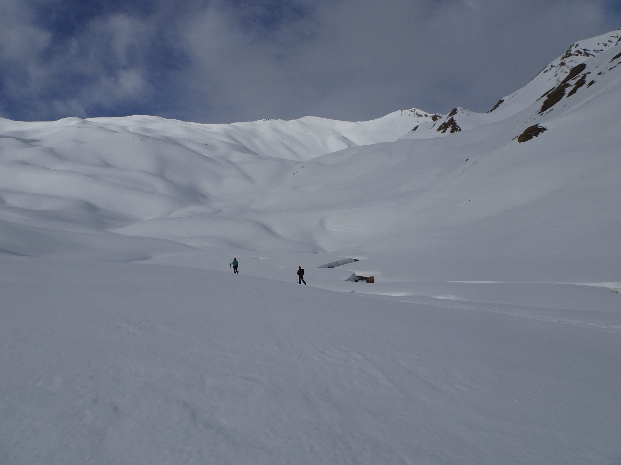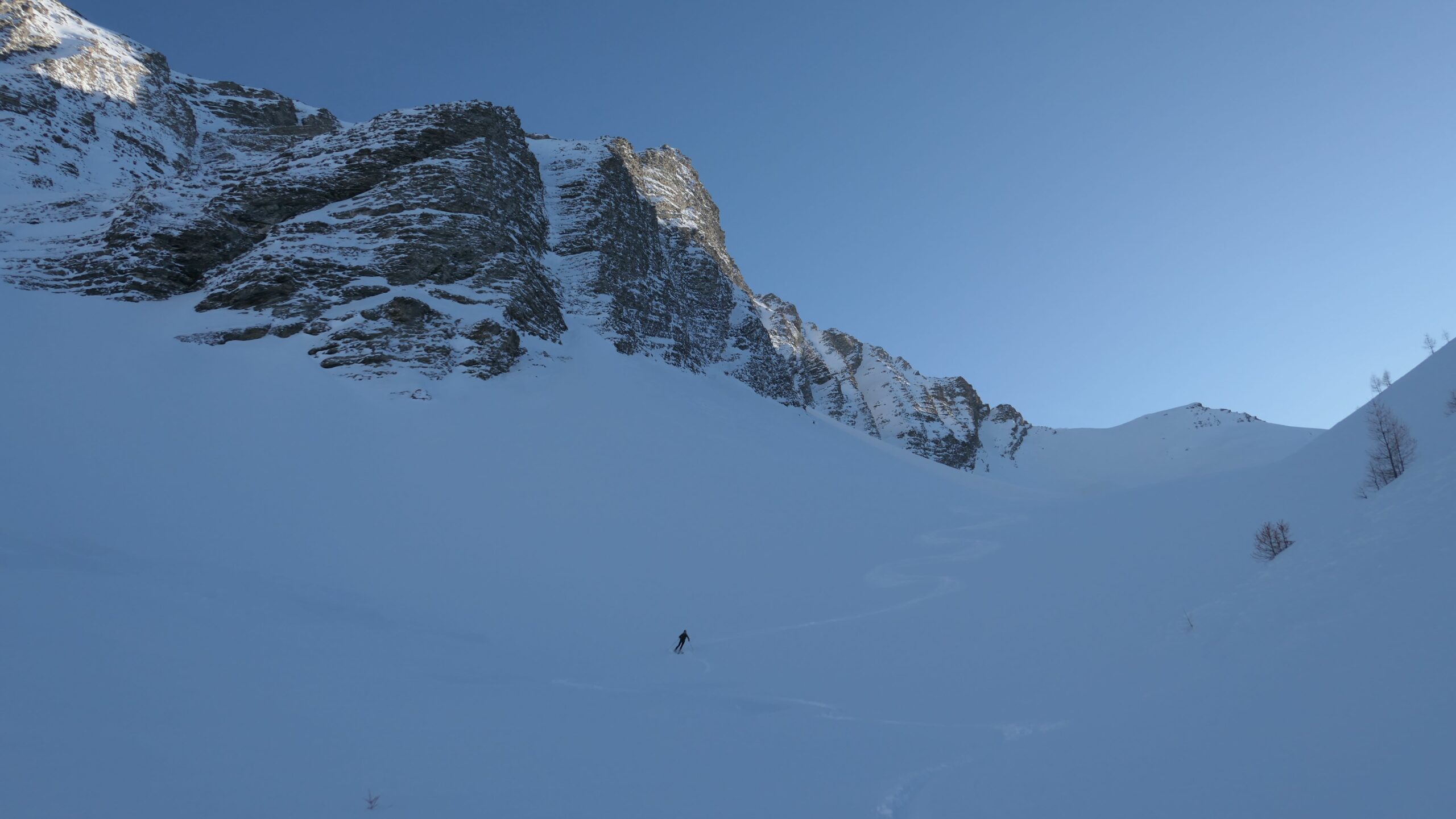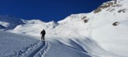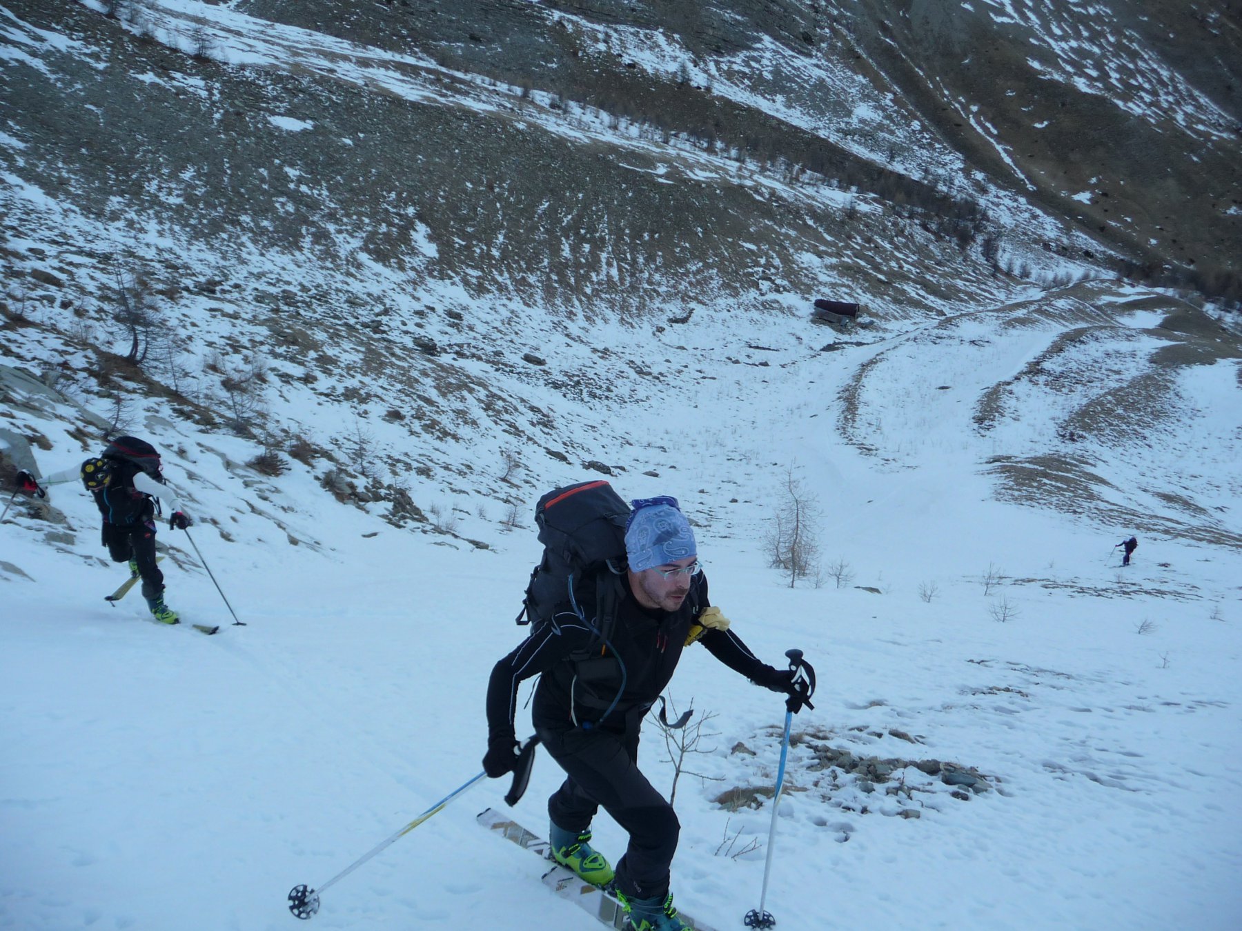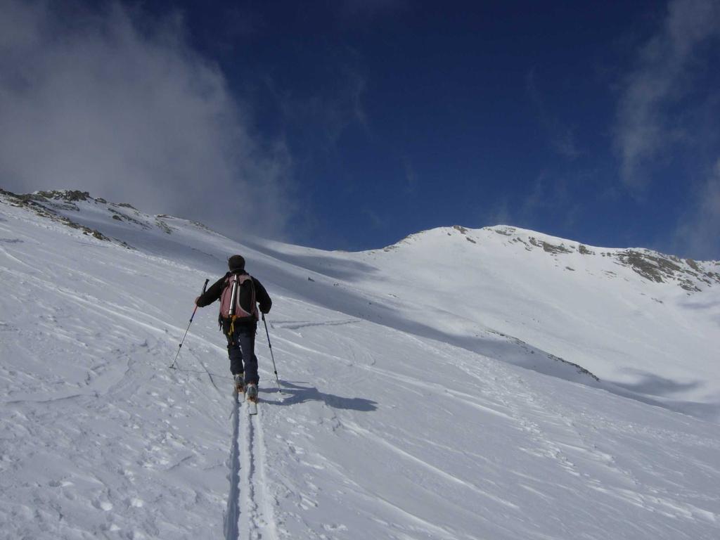 Da Intra Bas, prendere la strada forestale che permette di andare in fondo alla gola (5 min), passare i 2 ponti pedonali. Salire sulla riva destra del ruscello e proseguire fino ai primi valloni. A questo punto, prendere piede sulla prima vallata e continuare fino a circa 2500 m dove si può proseguire in fondo all’ultimo vallone e salire direttamente sul pendio sotto la cima, (buone condizioni di neve)o prendere a sinistra i pendii che conducono sulla cresta, e poi attraverso le creste o sotto di esse raggiungere la cima.