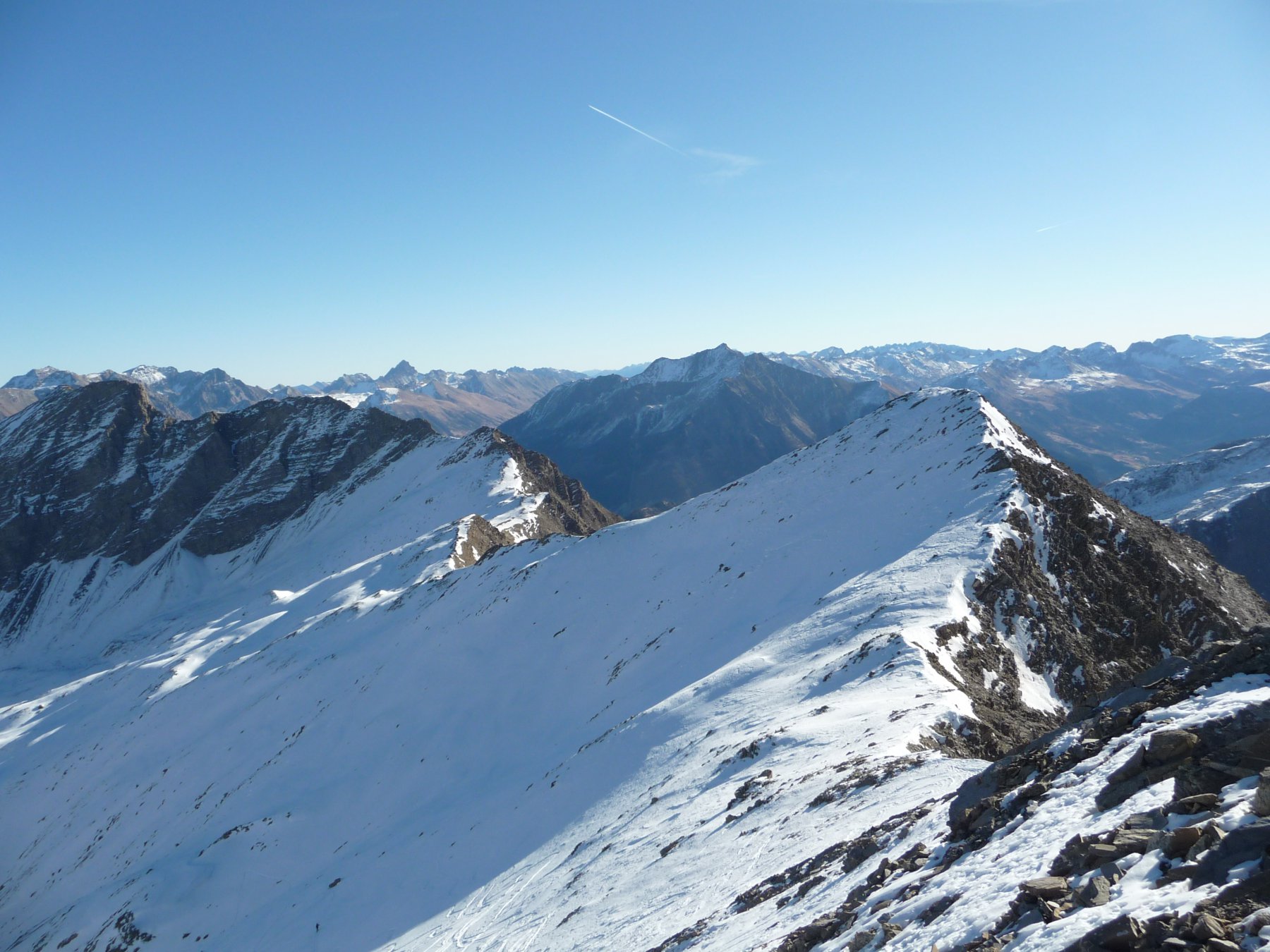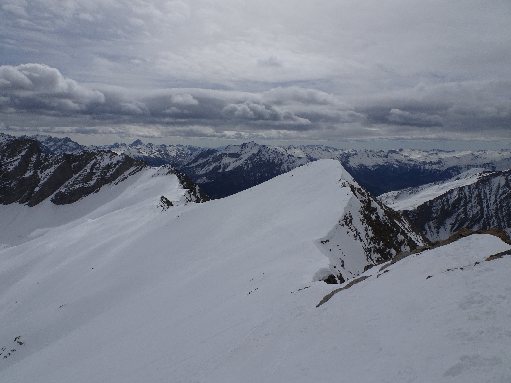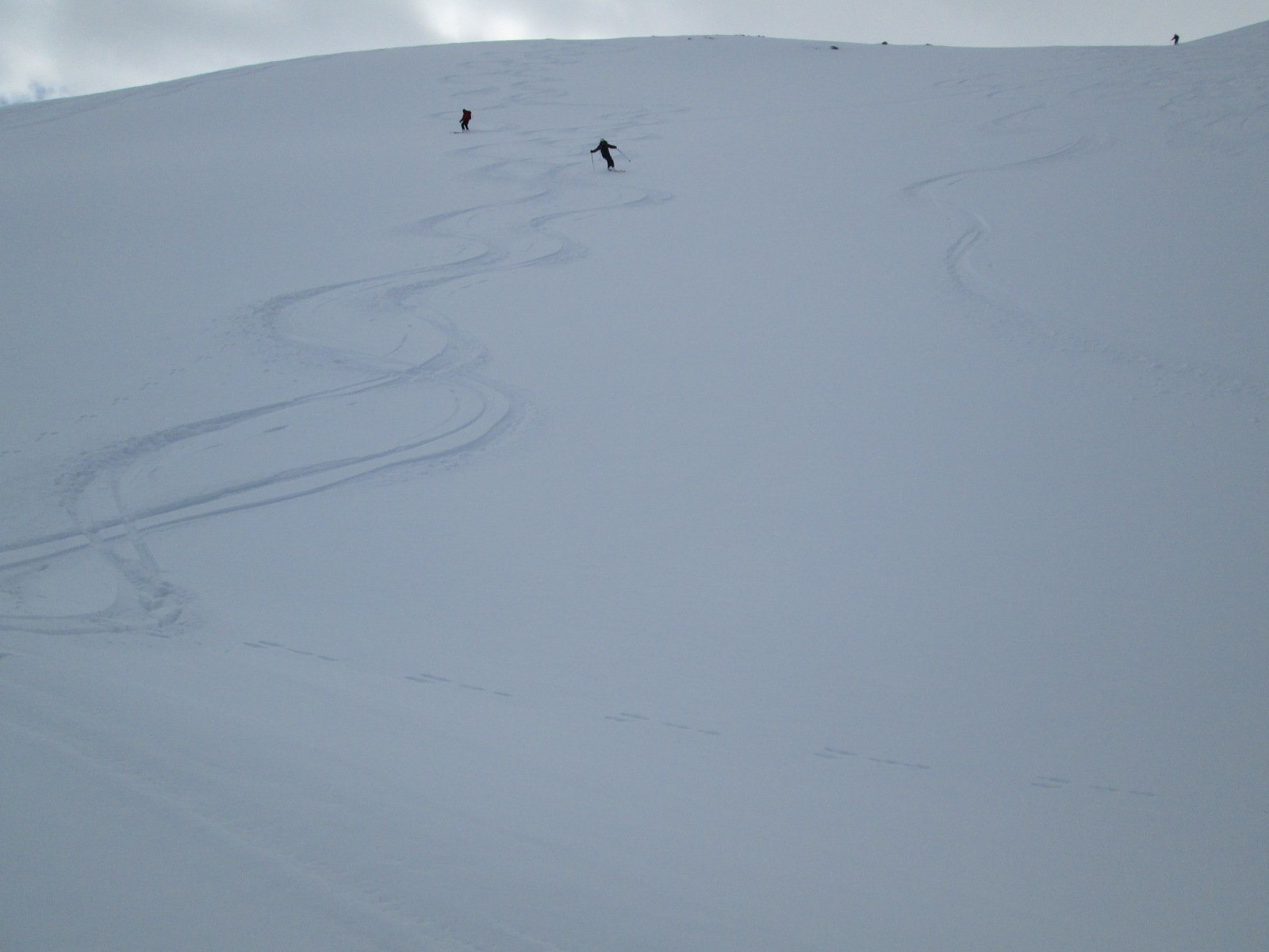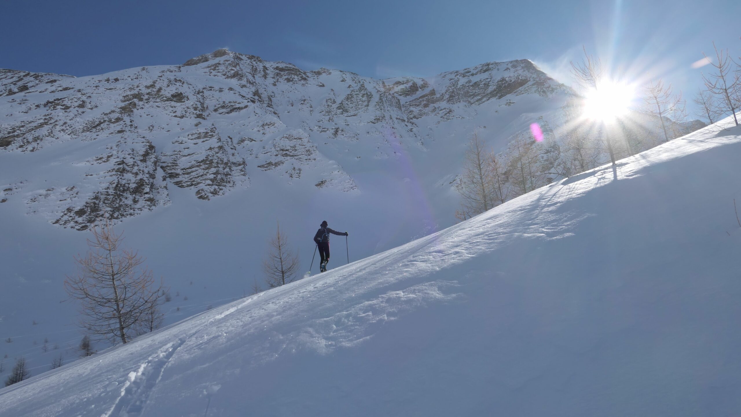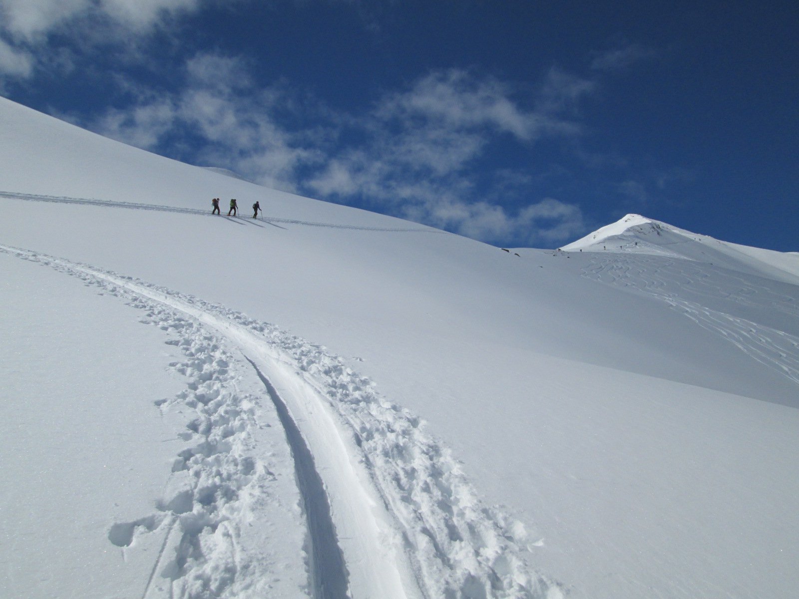 Da Intra Bas, prendere la strada forestale che permette di andare in fondo alla gola (5 min), passare i 2 ponti pedonali. Salire sulla riva destra del ruscello e proseguire fino ai primi valloni. A questo punto, prendere piede sulla prima vallata e continuare fino a circa 2500 m dove si può proseguire in fondo all’ultimo vallone e salire direttamente sul pendio sotto la cima, (buone condizioni di neve)o prendere a sinistra i pendii che conducono sulla cresta, e poi attraverso le creste o sotto di esse raggiungere la cima.