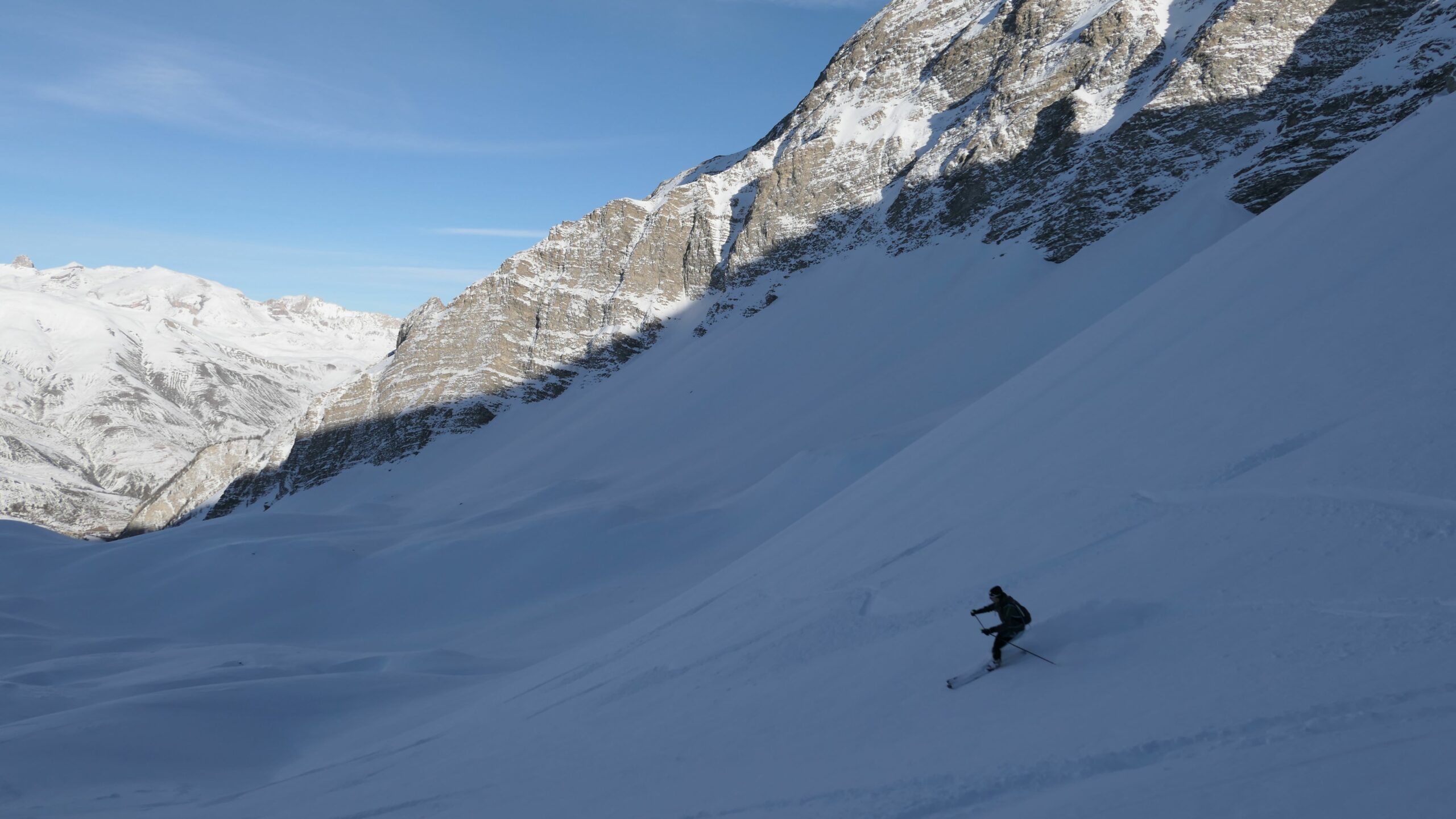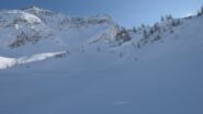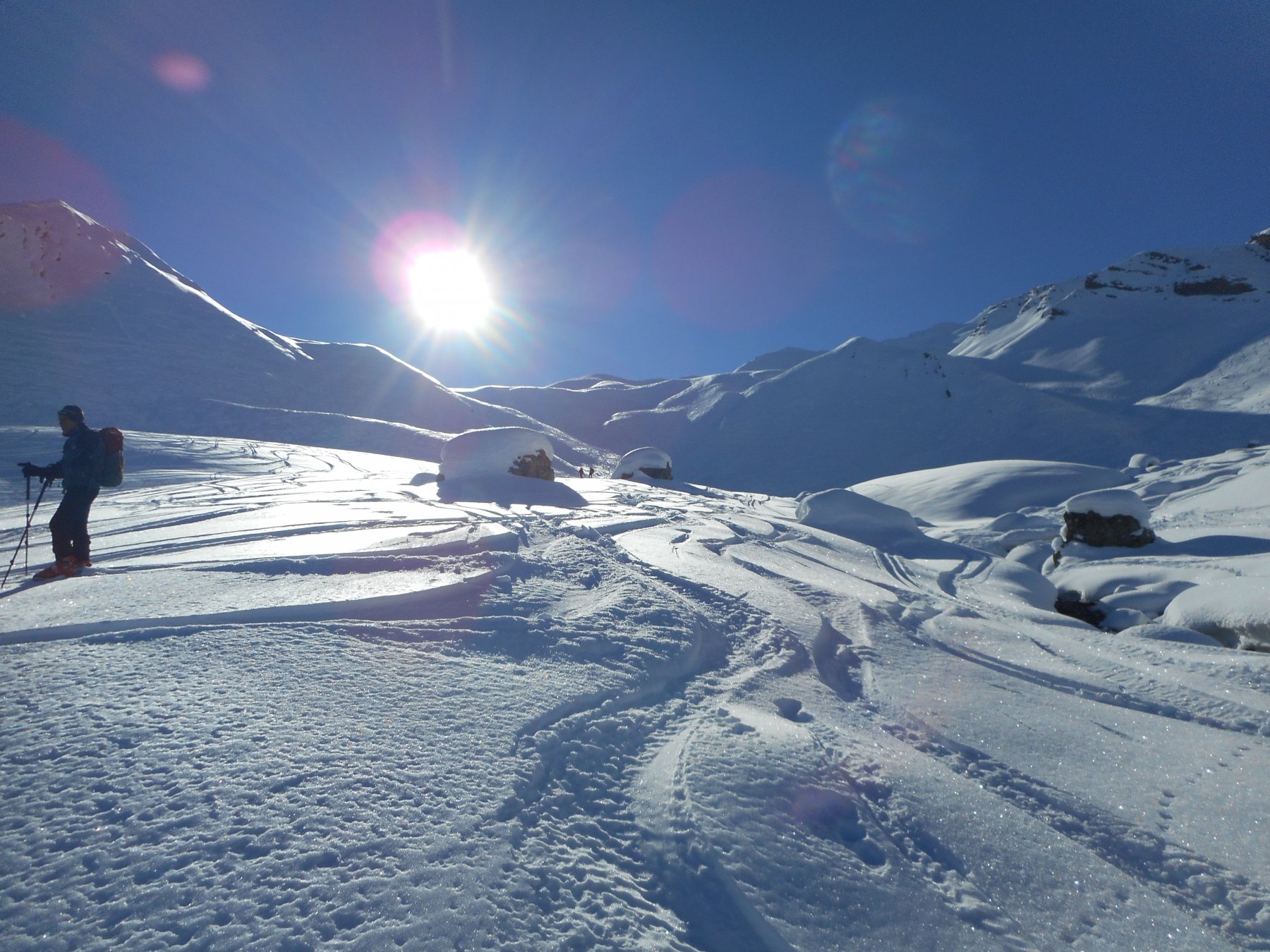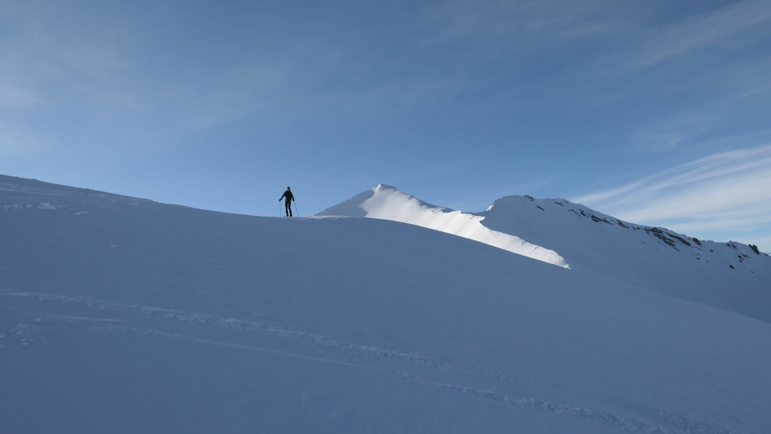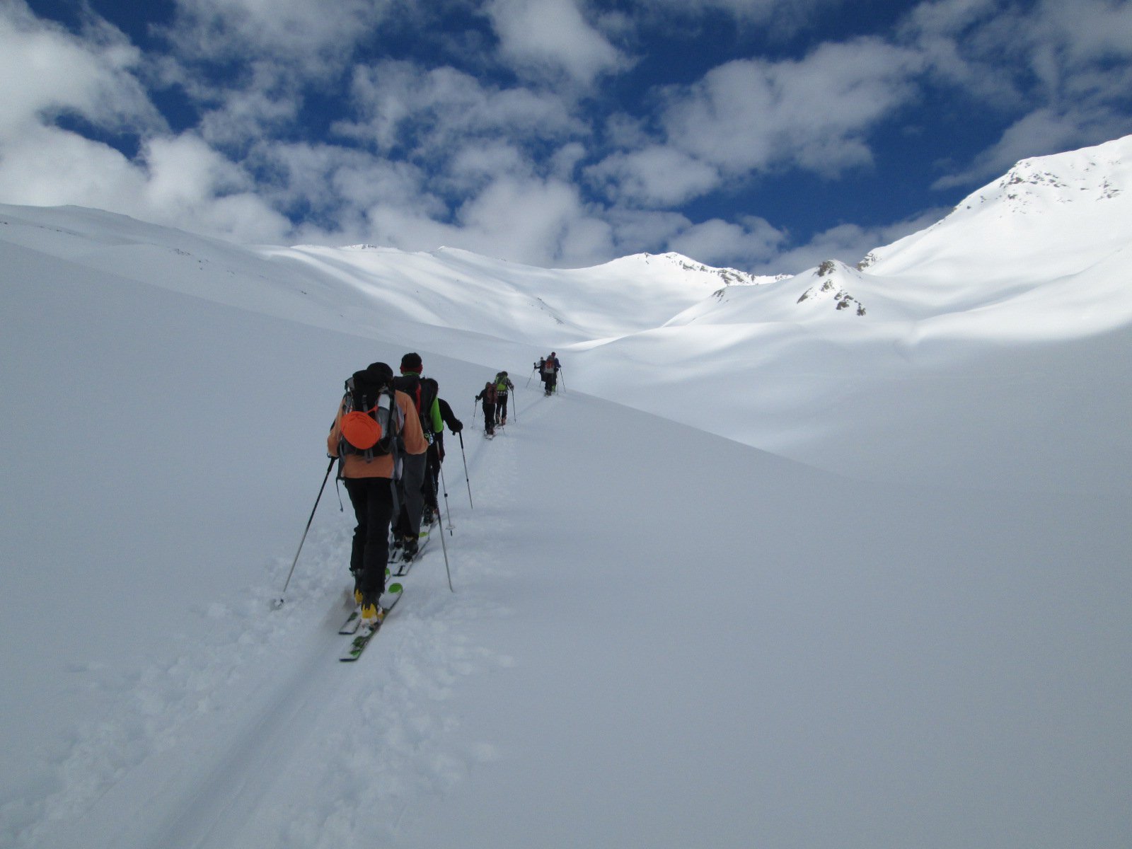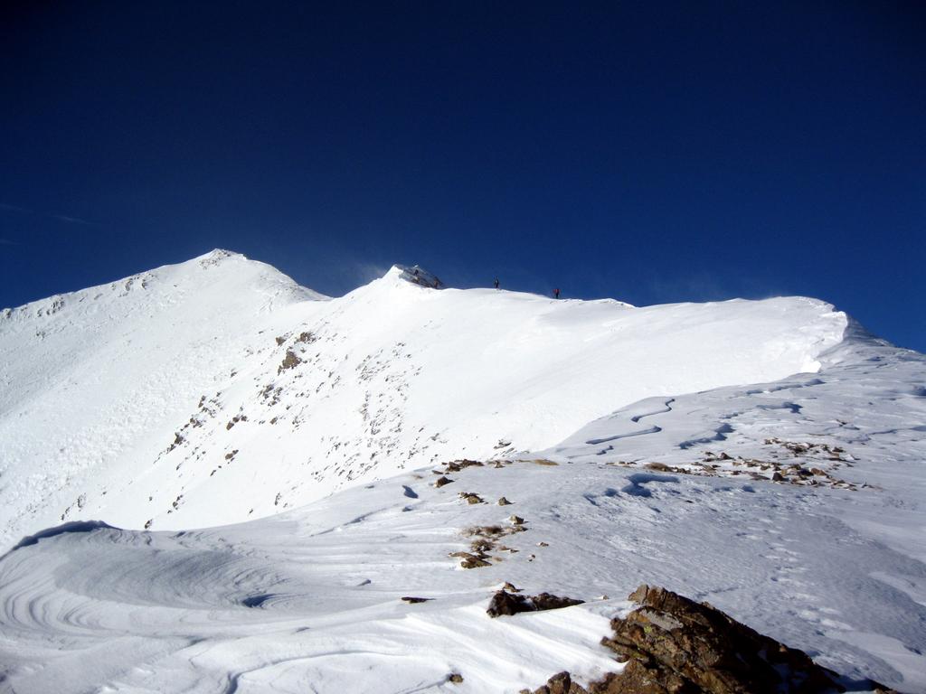 Da Intra Bas, prendere la strada forestale che permette di andare in fondo alla gola (5 min), passare i 2 ponti pedonali. Salire sulla riva destra del ruscello e proseguire fino ai primi valloni. A questo punto, prendere piede sulla prima vallata e continuare fino a circa 2500 m dove si può proseguire in fondo all’ultimo vallone e salire direttamente sul pendio sotto la cima, (buone condizioni di neve)o prendere a sinistra i pendii che conducono sulla cresta, e poi attraverso le creste o sotto di esse raggiungere la cima.