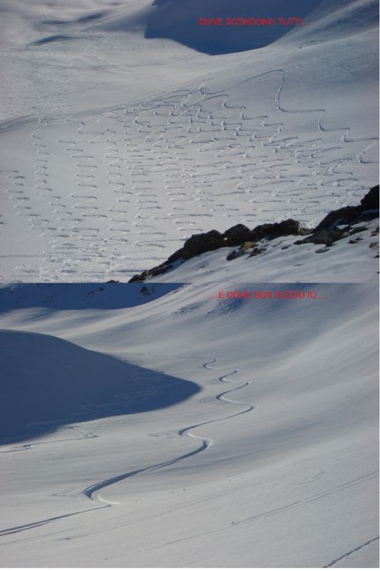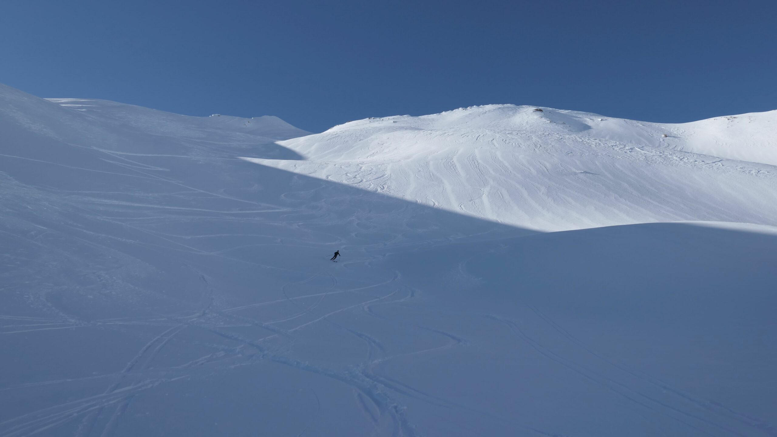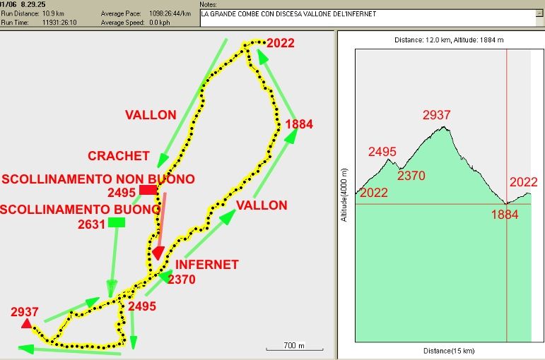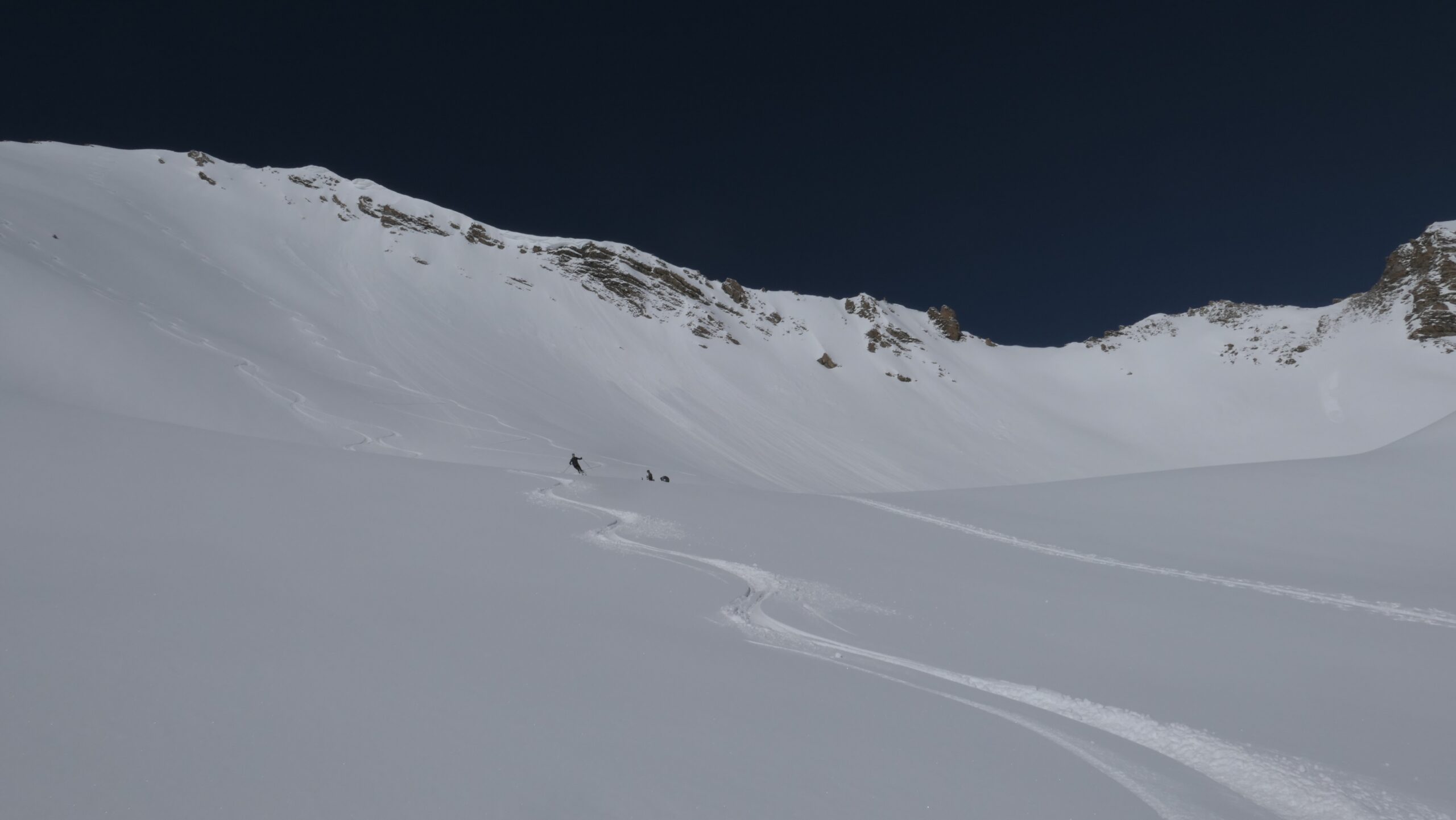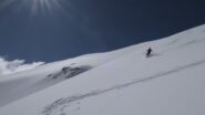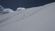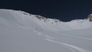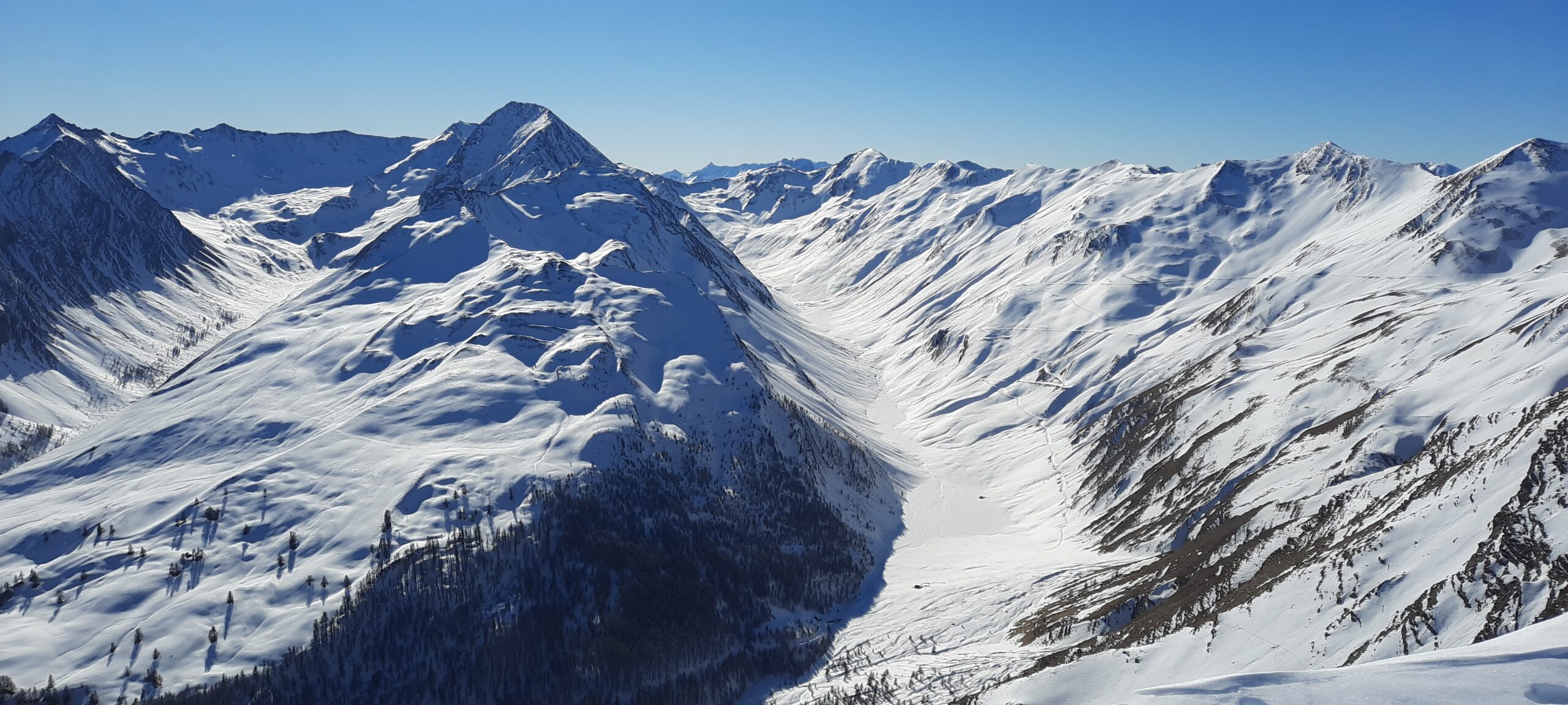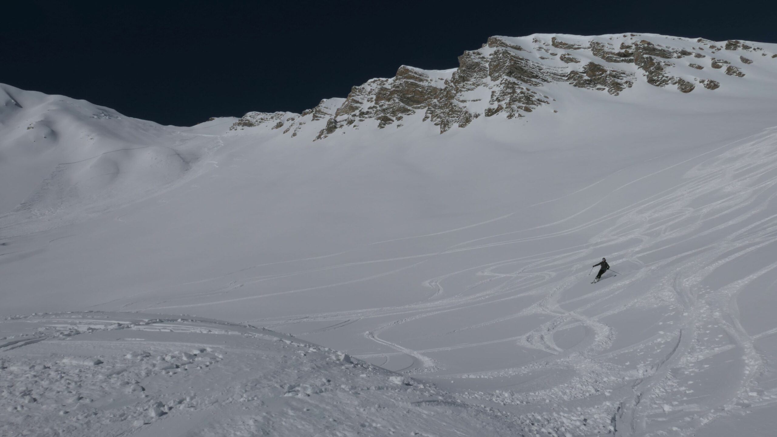 Da Intra Bas, prendere la strada forestale che permette di andare in fondo alla gola (5 min), passare i 2 ponti pedonali. Salire sulla riva destra del ruscello e proseguire fino ai primi valloni. A questo punto, prendere piede sulla prima vallata e continuare fino a circa 2500 m dove si può proseguire in fondo all’ultimo vallone e salire direttamente sul pendio sotto la cima, (buone condizioni di neve)o prendere a sinistra i pendii che conducono sulla cresta, e poi attraverso le creste o sotto di esse raggiungere la cima.