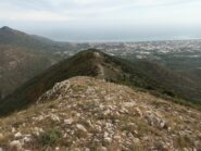 Dalla vetta seguire la traccia in direzione Peagna, dapprima su percorso aperto e abbastanza ripido e sassoso, poi raggiunto un promontorio con una croce, si entra in una fitta macchia mediterranea dove talvolta la vegetazione può diventare fastidiosa. Ci sono parecchie tracce, bisogna cercare la migliore ricordandosi che occorre spostarsi progressivamente verso sinistra quando si incontrano dei bivi, per non finire nel vallone sbagliato (come riferimento si tengano le case di Peagna). Dopo una discesa piuttosto diretta, si raggiunge una zona boscosa, dove il sentiero a mezzacosta prosegue a sinistra, per poi attraversare un rio (spesso in secca) e quindi raggiungendo una strada asfaltata poco a monte di Peagna. Da qui si dovranno seguire i segnavia bianco/rossi presenti sui muri. Si entra nella frazione e passando accanto alla chiesetta con cimitero, si continua per un breve tratto di sentiero, e poi nuovamente a sinistra su strada asfaltata scarsamente trafficata. Brevissima risalita e poi ancora discesa, sotto il viadotto autostradale, fino a tornare a Ceriale sulla Aurelia, e da qui nuovamente al cimitero in via Cadanzo.