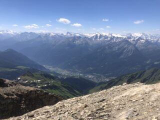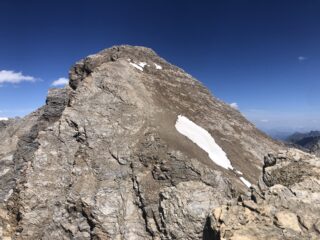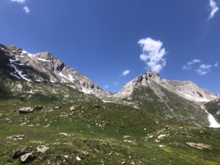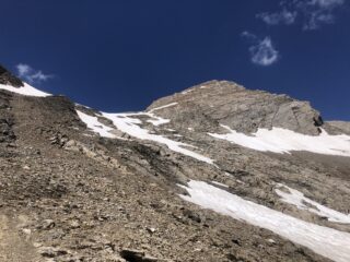 Visto il caldo non volevo pestare neve, invece la neve c’era. Si aggirano molti nevai ma non quello che arriva al colle. Comunque neve molto molle per il caldo e 10/15 minuti di piedi a mollo. Il sentiero a volte è più evidente a volte meno, qualche sparuto bollo giallo o bianco e ometti abbastanza presenti. E tuttavia perso il sentiero sotto il nevaio un ometto tutto a sinistra mi ha tratto in inganno e spinto fuori via. Dietrofront per una cinquantina di metri di dislivello poi ok. Pendio finale uno sfasciume unico da surfare alla meglio. Da Bonalex tutto bello ripido! In cima un panorama bestiale, da non venir più via! Poi dal colle su neve e qualche roccette finale visitata anche la petite rochere. La verità è che non volevo più scendere. E invece sono sceso, nessun problema. Un paio di torrenti da saltare in agilità alla piana se non si vuole togliere gli scarponi.