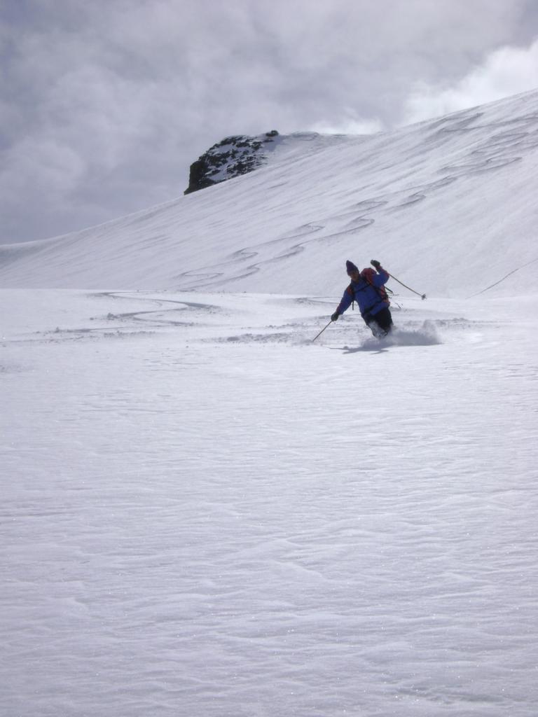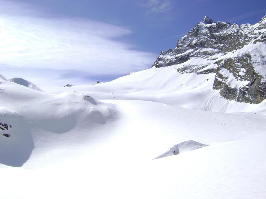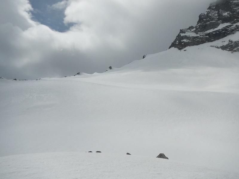 Percorrerlo per pendenze non eccessive e, al suo termine, voltare a sinistra entrando sul ghiacciaio di Torrent, che non è visibile dal basso.