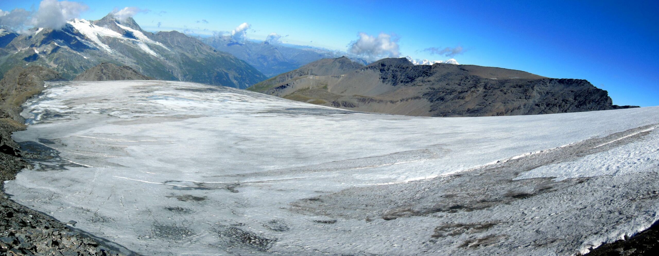 Intero percorso pulito. Il ghiacciaio è molto più basso del solito, segno del forte caldo che ha iniziato già a giugno. Quindi è si riduce a un’escursione con un buon dislivello.