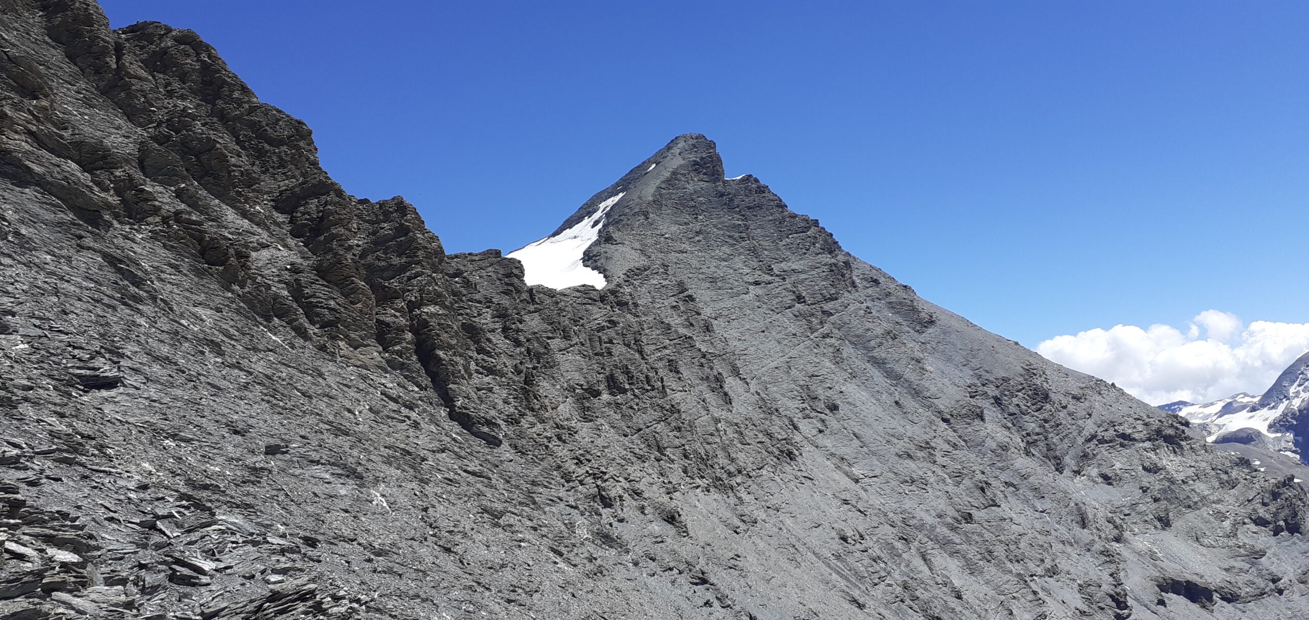 Ottime condizioni con un po’ di ghiaccio sulla traccia di salita solo da quota 3.550 ma facilmente aggirabile. Ramponi inutili. Abbiamo dormito in tenda a Le Saut nel parcheggio affollatissimo di auto, camper e tende. Tantissima gente sul percorso e in vetta da dove si gode di un panorama davvero eccezionale. La salita in molti tratti è parecchio ripida ma molto redditizia. La discesa richiede cautela solo in alcuni tratti per la presenza di ghiaccio in alto e poi detriti e pietrisco. Con Daniela.