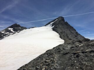 Che dire? In condizioni come oggi senza neve e ghiaccio su sentiero sino in cima è una gita strepitosa e merita il viaggio eterno per arrivare alla partenza.Arrivare a 3750 m. senza particolari problemi è impagabile. Concordo con una precedente relazione di Pedrito , all’uscita della parte erbosa seguire il sentiero che attraversa appena sotto la cresta a sinistra e non seguire la cresta anche se vi sono alcuni ometti perché porta a un passaggio un po’ esposto