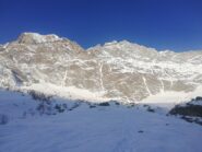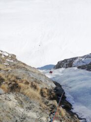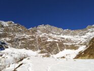 CAVA PRIMA DI CERVINIA (PARTENZA GITA CHATEAU DES DAMES). AVVICINAMENTO EVIDENTE (CONSIGLIABILI SCI). LE CASCATE SONO A DX. DEL CANALE DEL CHATEAU, SULLA BARRIERA ROCCIOSA (IN SERIE: CAMMELLO, MURAILLES, MIROIR, LIA).