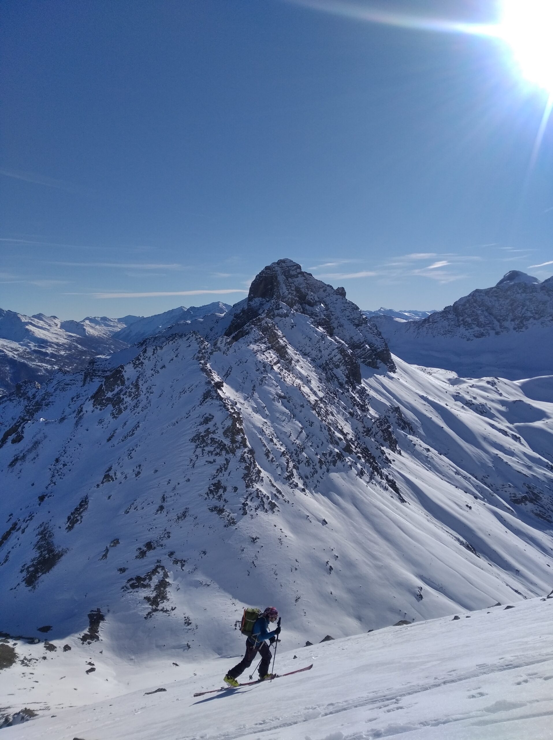 L'itinerario viene proposto come sci ripido "entry level" per i 300m a 35°/40°della Grand Hoche.