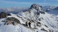 - Opzione1: risalire versante italia lato Clotesse per 50 m fino ad una spalla e reperire il sentiero estivo (poco ripido/esposto, ma obbliga a tagliare grossi pendii sotto cresta)
