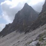 Discesa: dirigersi verso sx in direzione della punta Grand’Hoche e scendere lungo i pendii per raggiungere il sottostante passo dell’ Orso dove sorge il Bivacco Blanchetti.