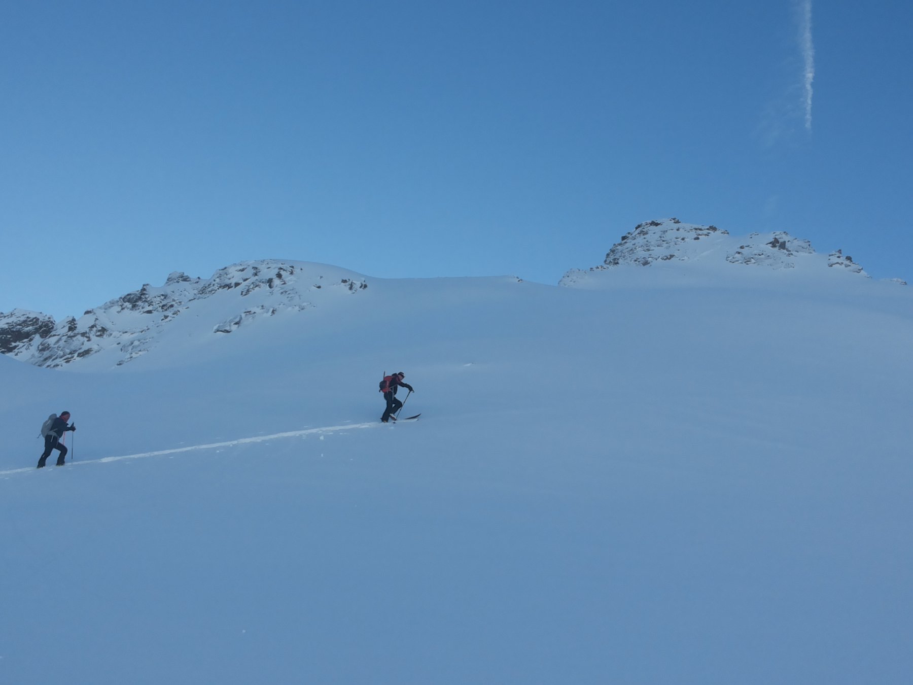 Si raggiunge il punto più alto con gli sci, sempre più ripido, o li si abbandona poco sotto la vetta per salire gli ultimi metri a piedi.
