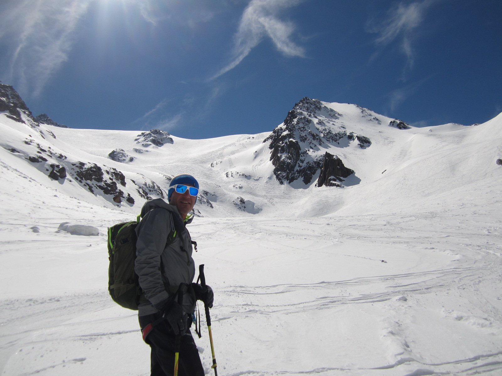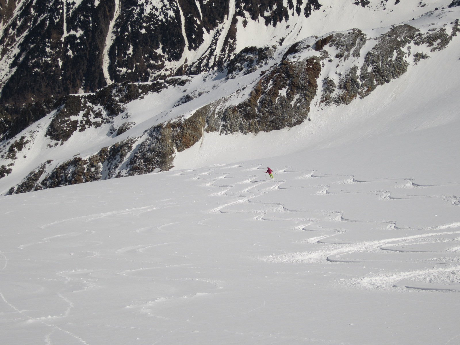 Dalla vetta simpatica variante di discesa su pendio di circa 40°