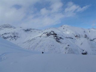 giornata variabile neve splendida in basso, ventata in alto; prima gita con ciaspole e tavola per Giampi; qualche difficoltà sulla crosta ventata in alto, comunque soddisfatto. Magica la discesa nel bosco con 50 cm di neve fresca