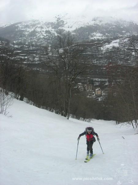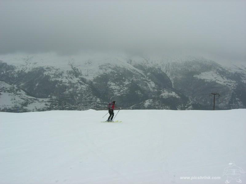 con qualche ora a disposizione non si poteva andare più distanti…piacevolissima gita su neve quasi perfetta (in pista), sotto le nebbie ottima visibilità ed in cima un ampio e straordinario sprazzo di sole verso il Viso.Oggi oltre a me e mark, altri 5 sciatori e due cisapolari…