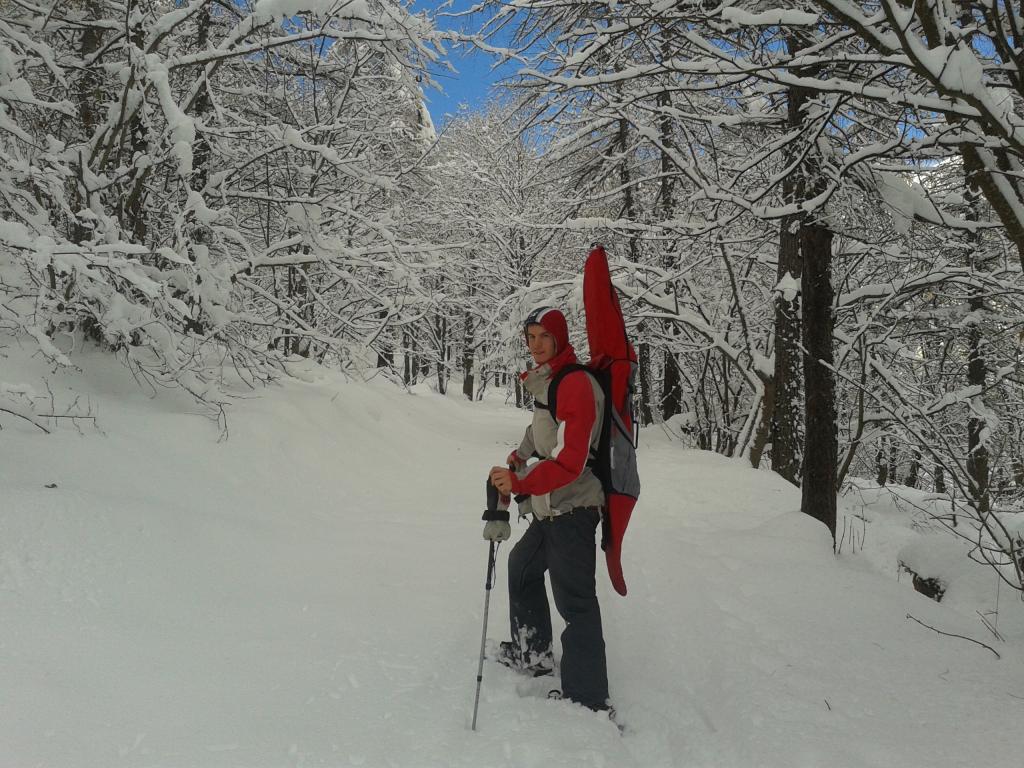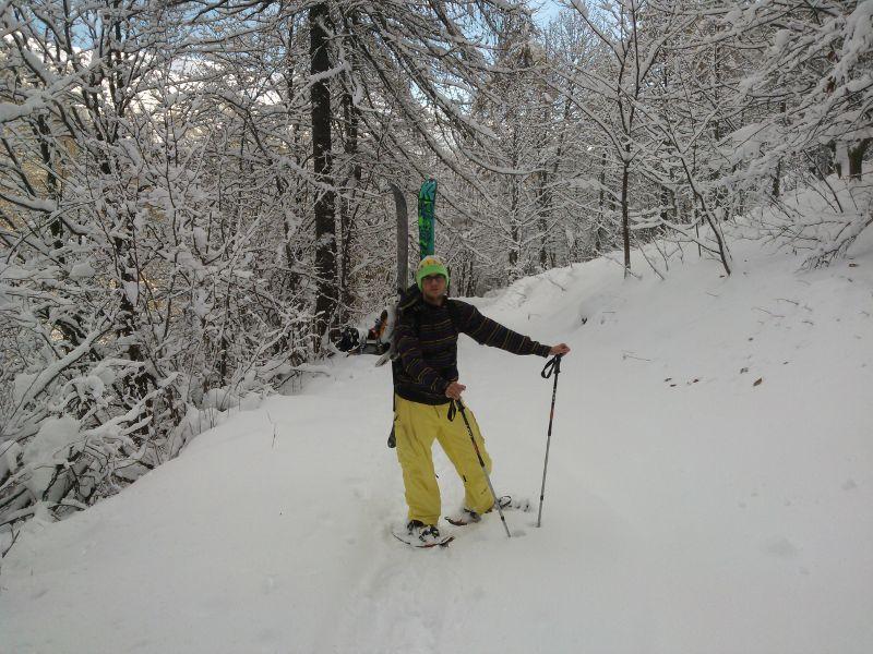 Colto al volo l occasione dopo la neve di domenica e di ieri per una sciata pre-stagione!In realtà l obiettivo era il bar all arrivo del secondo skilift, poco sotto la cima. Giornata molto bella con neve farinosa oltre l’ arrivo della seggiovia, più umida al di sotto e molto bagnata al rientro! Belle curve nella parte alta con neve a tratti ventata. Saliti con le ciastre, ci siamo fermati ai casolari oltre metà del granero causa vento! con sci da freeride( pesanti da portare sullo zaino:)) io e snowboard jack!