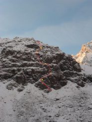 Attacco: una rampa di neve obliqua con andamento verso sinistra. 1850 m circa.