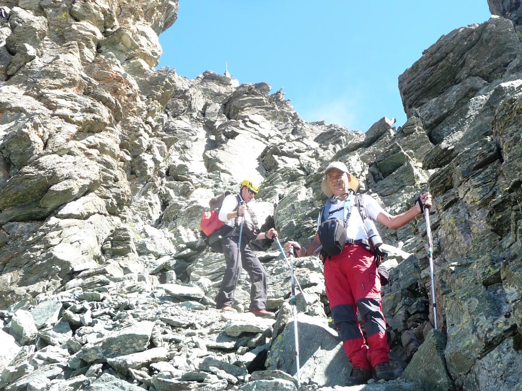 Agosto comincia alla grande con il Granero! Nevai pressochè assenti, ma all’uscita francese del Buco di Viso la neve rende stretto il passaggio; anche sul sentiero del Postino un nevaio è ancora presente nel tratto attrezzato con corde, ma si passa. Dopo il Buco di Viso percorrere circa 200 metri lineari per trovare gli ometti per il canale del Luisaras (ripido, ma con traccia); poi cercare di non perdere quota sui grossi massi e puntare al canalone (a sinistra) che scende subito a destra della nostra cima: sfasciumi mobili e roccette, alcuni tratti un po’ esposti, che richiedono l’uso delle mani.