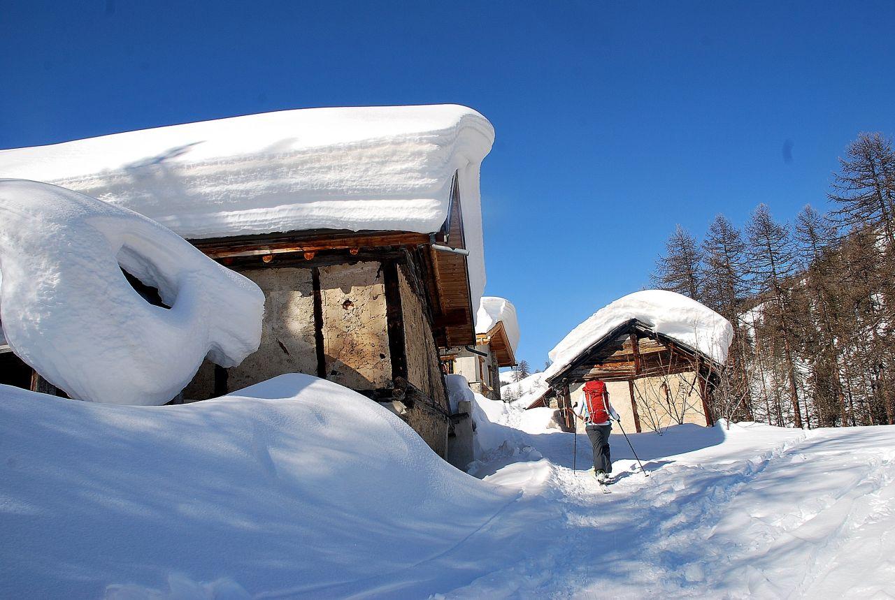 Dalla borgata La Draye prendere per gli ampi prati sulla sinistra poi seguire la pista che si inoltra nel vallone con numerosi tornanti porta alla bellissima Hameau di Granon.