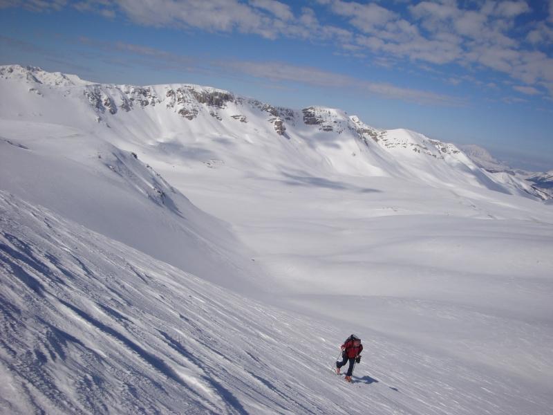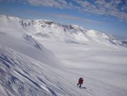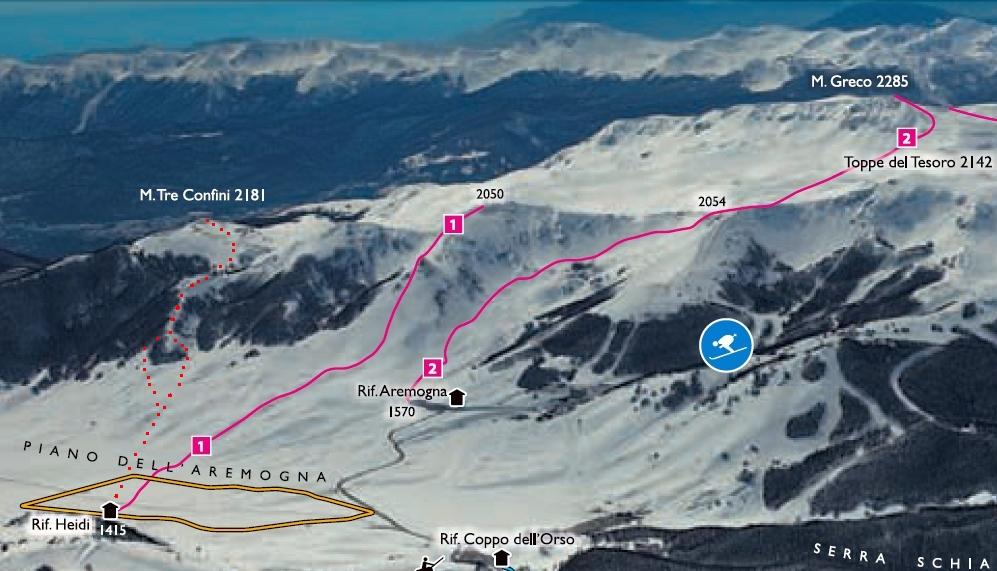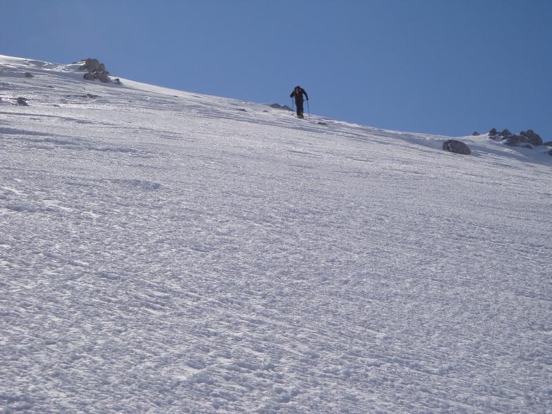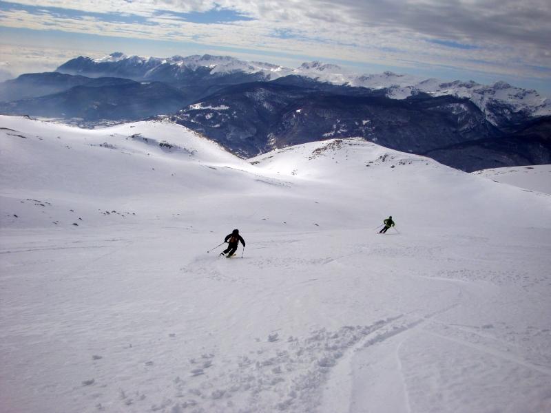 Dalla vetta (2285 m.) sciare in direzione sud lungo la dorsale verso Monte Chiarano.