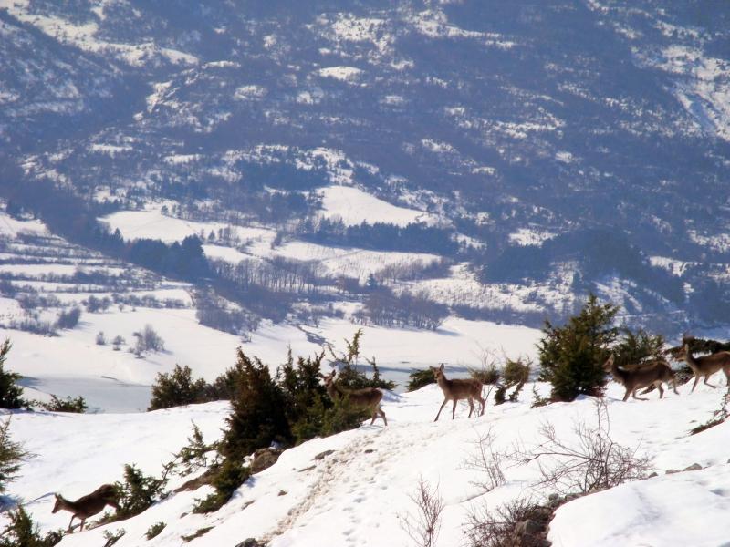 In caso di scarso innevamento sciare fino a dove la neve lo consente e poi sci in spalla fino al centro abitato di Barrea (diga del lago omonimo).