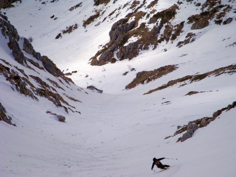 Poi scendere in direzione Sud-Ovest l’ampio pendio che si abbassa in Valle Pistacchia.Arrivati sul fondo valle Pistacchia si prosegue per un tratto quasi in piano fino a q.1900 circa,dove la valle con un brusco cambio di pendenza si riduce improvvisamente ad uno stretto corridoio.