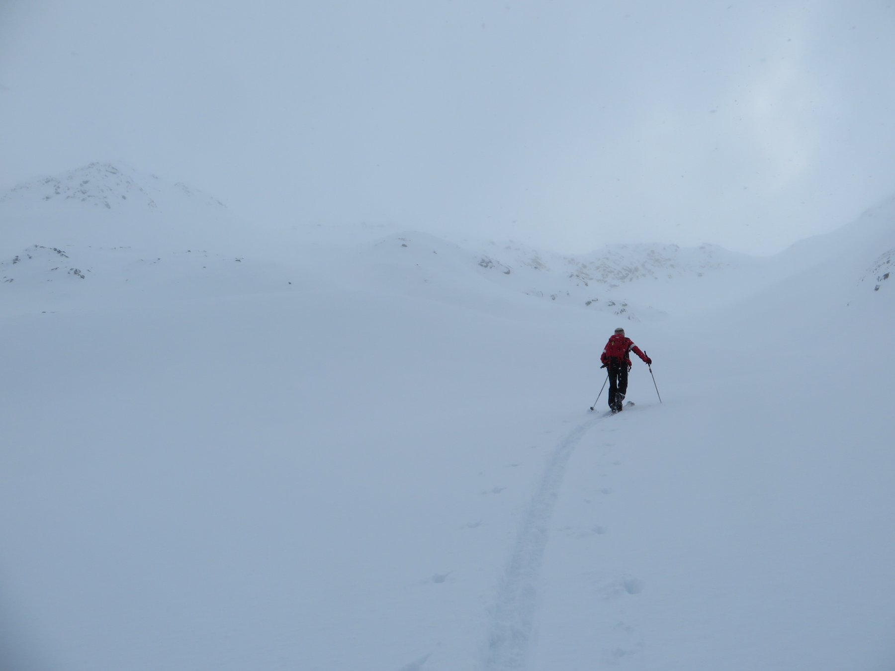 Dal parcheggio antecedente il lucknerhous si procede verso Est con lungo e pendente traverso (spesso ghiacciato o con pericolo valanghe, fare attenzione).